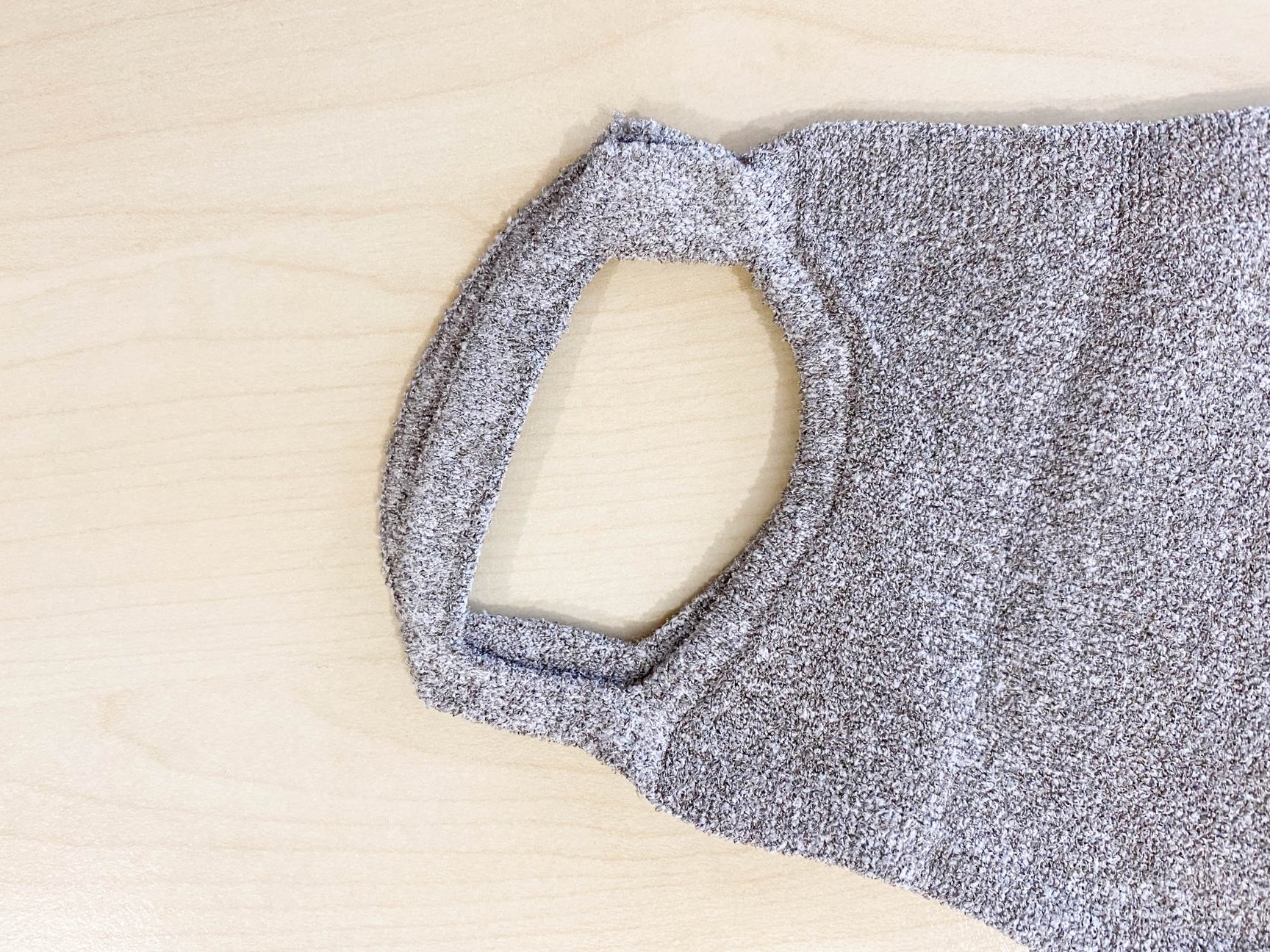 生地はタオルのような肌触りで、さらさらとした着け心地が気持ち良いです。生地には若干の硬さを感じましたが、使用していくうちに顔に馴染んでしっかりとフィットします。立体構造なので呼吸もしやすく、リップがマスクに付着することはなかったです。また、肌にピタッとくっつく素材ではないのでファンデ落ちは全く気になりませんでした。ただ、ツルツルとした素材ではないので、肌荒れしている場合はマスクが擦れると刺激を感じるかもしれません。
