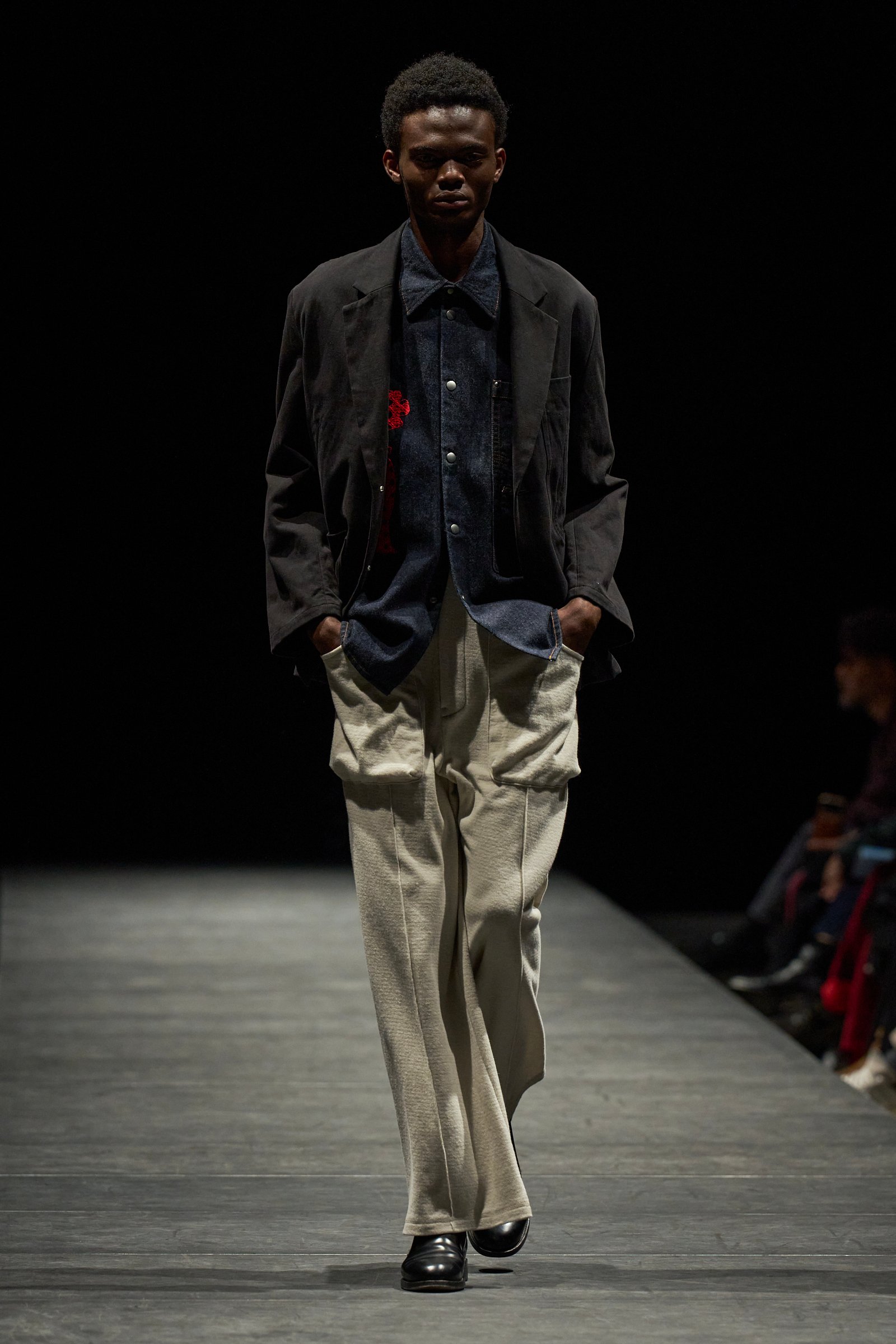 先の通り、コレクションではワークウェアの機能や造形を手がかりにしながら、素材や色彩の対比によって、労働者の内に秘める尊厳が表現された。それは、貧困や孤独が人から豊かな暮らしや、情緒的な関わりを難しくしようとも、誇りだけは外的な環境に依存せずに、自分の意思で持ち続けることができる。苦境においても静かな強さでそれを手放さない姿勢こそ、普遍的で美しいものなのだというメッセージに思えた。