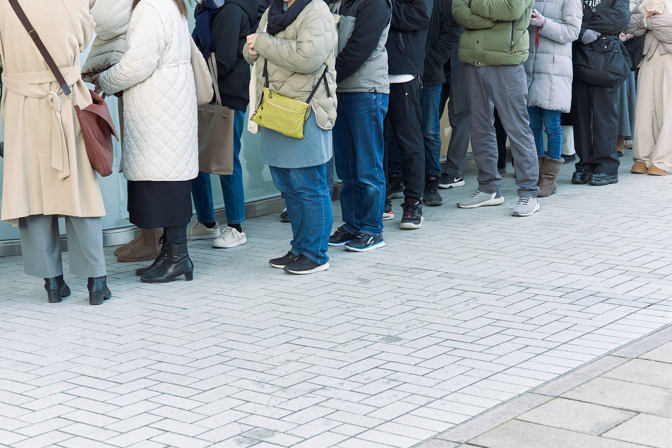 10時の開店を控え、入り口にはオープンを待つ人は82人。凍える寒さの中、椅子を持参して並ぶ人も多く、来店者たちの高い熱意を感じる。