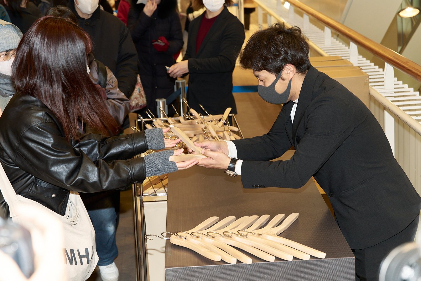 先着400名には記念品として松本パルコのロゴを刻印したオリジナル木製ハンガーを配布した。このロゴは松本市出身のアートディレクター 清水貴栄がデザインしたものだという。客足は絶えず、開店直後に予定個数の400個の配布が終了。開店前の行列は最終的に300人に及んだ。