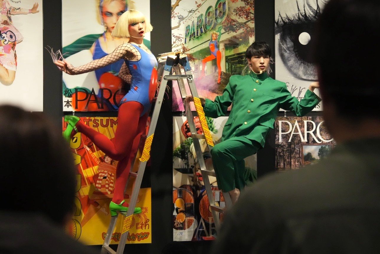 パフォーマンスがスタート。アオイヤマダは「松本パルコ」を、高村月は「春」を表現し、2人が出会うことで松本パルコは「松本春子」に変化するというストーリーだ。