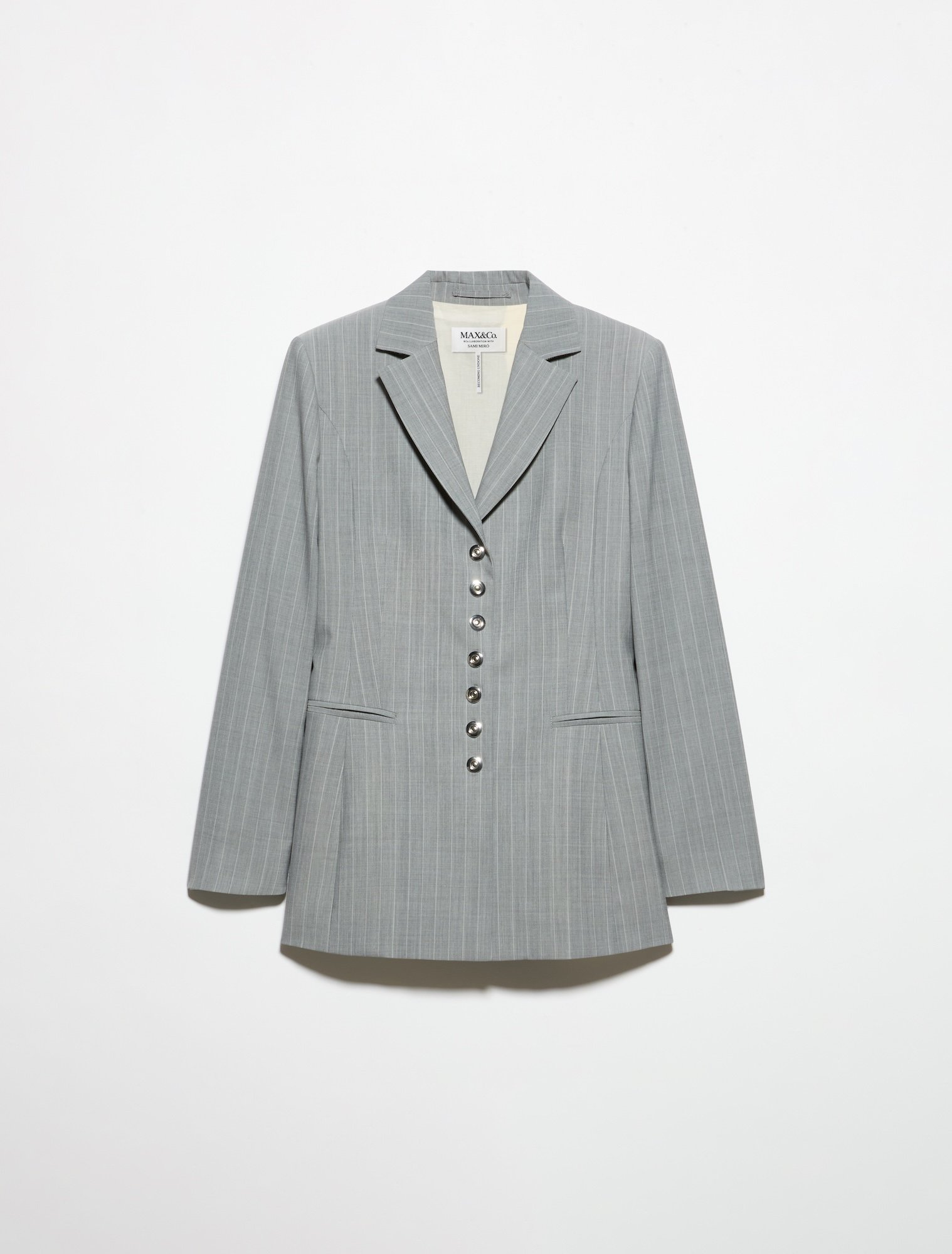 このコレクションでは、コートやジャケットといったマックス アンド コーの定番的なアイテムをベースにしながらも、サミ・ミロ・ヴィンテージらしい脱構築的なテーラリングや身体に沿ったパターン、切りっぱなしのディテールを通して再解釈している。