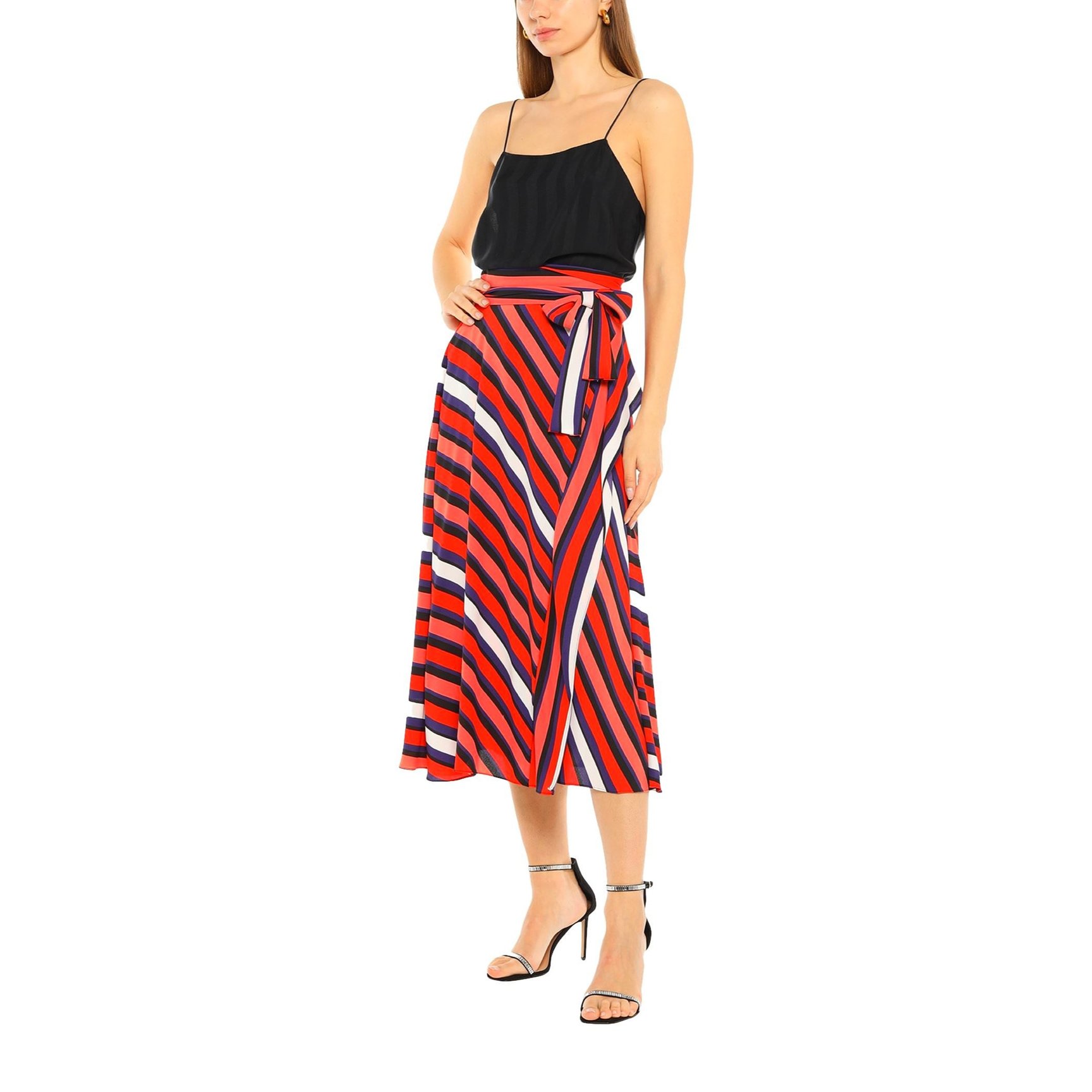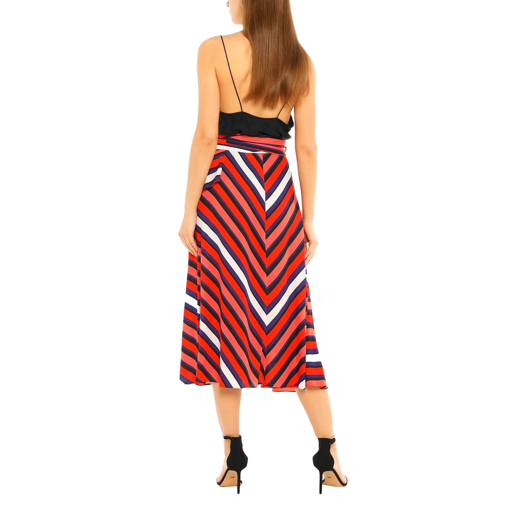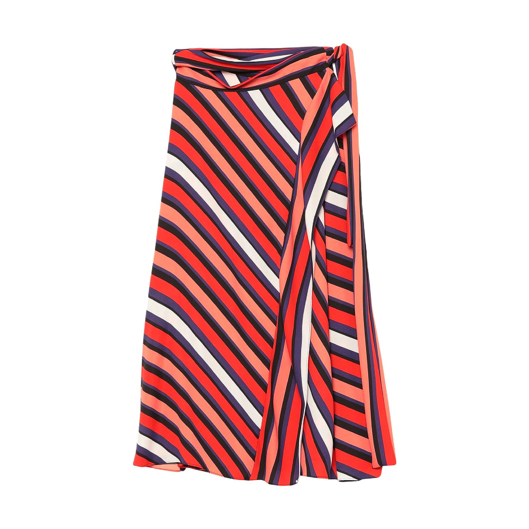 ブランドを代表するラップドレスのデザインをスカートに採用した、「ダイアン フォン ファステンバーグ(DIANE von FURSTENBERG)」の色鮮やかなミディ丈スカート。幾何学的なストライププリントがコーディネートに華を添える、着心地もインパクトも満点の一着でおしゃれに差をつけて。