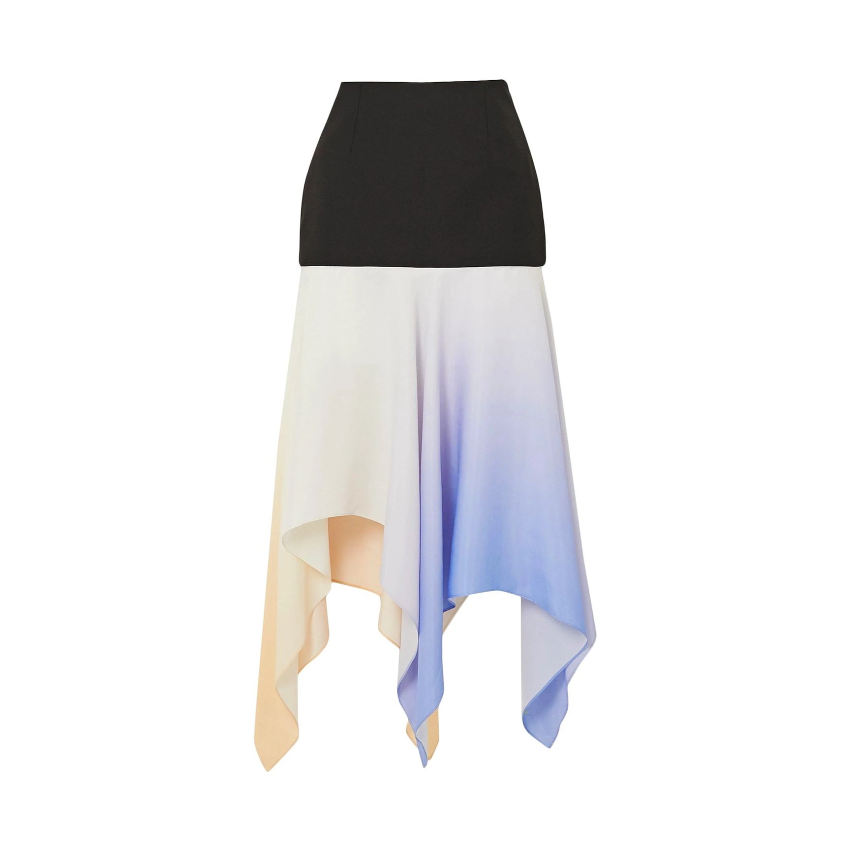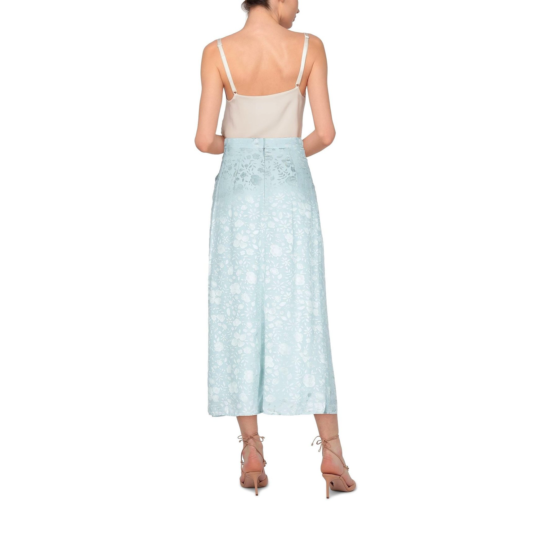 アイシーカラーのブルーがやわらかく美しい、「アレクサチャン(ALEXACHUNG)」の上品で可憐なスカート。程よく引き締まったタイトなシルエット、裾のゆとりあるドレープでエレガントな印象に仕上げています。全体とウエスト部分に刺繍で表情をつけた、オフィスにもデートにも映える一着です。