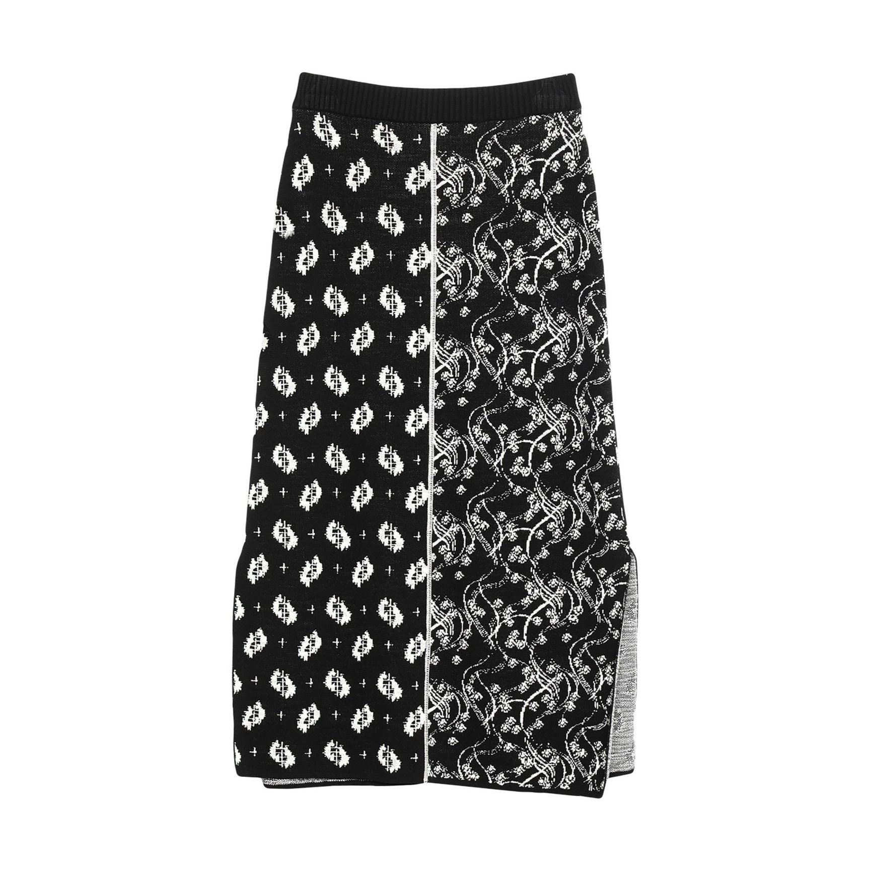 左右異なるデザインで遊び心を満たしてくれる、「ケンゾー(KENZO)」の薄手ニット素材を採用したドッキングスカート。モノトーンで落ち着いたオーラをまといつつ、優雅なボタニカルデザインで大人のカジュアルスタイルを完成させる、毎日のプライベートシーンに頼れる一枚です。