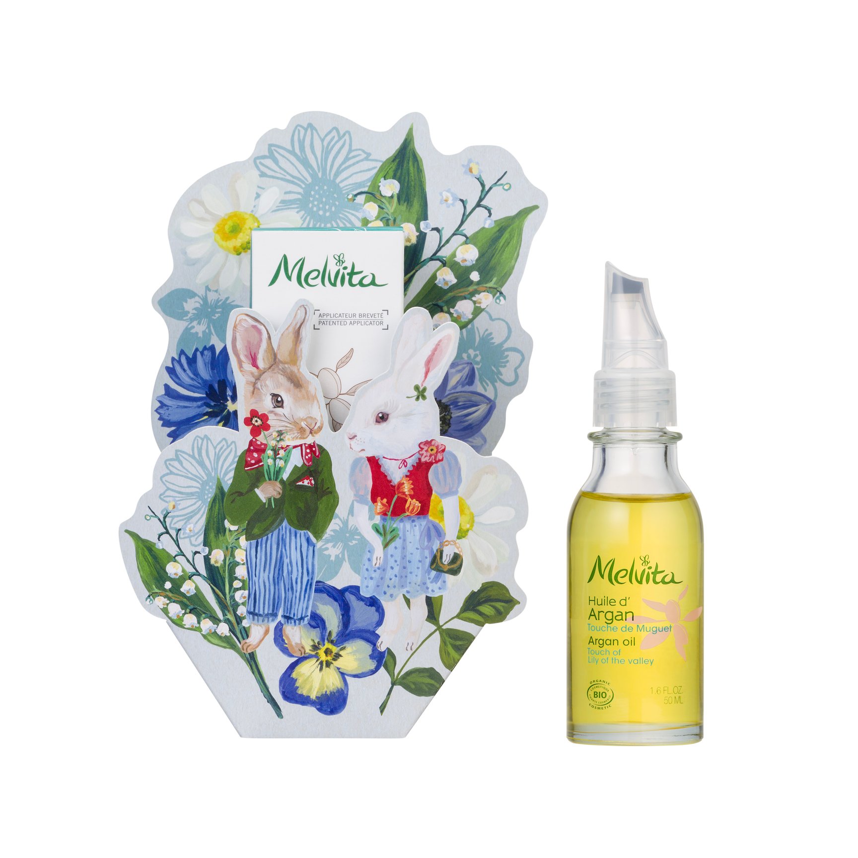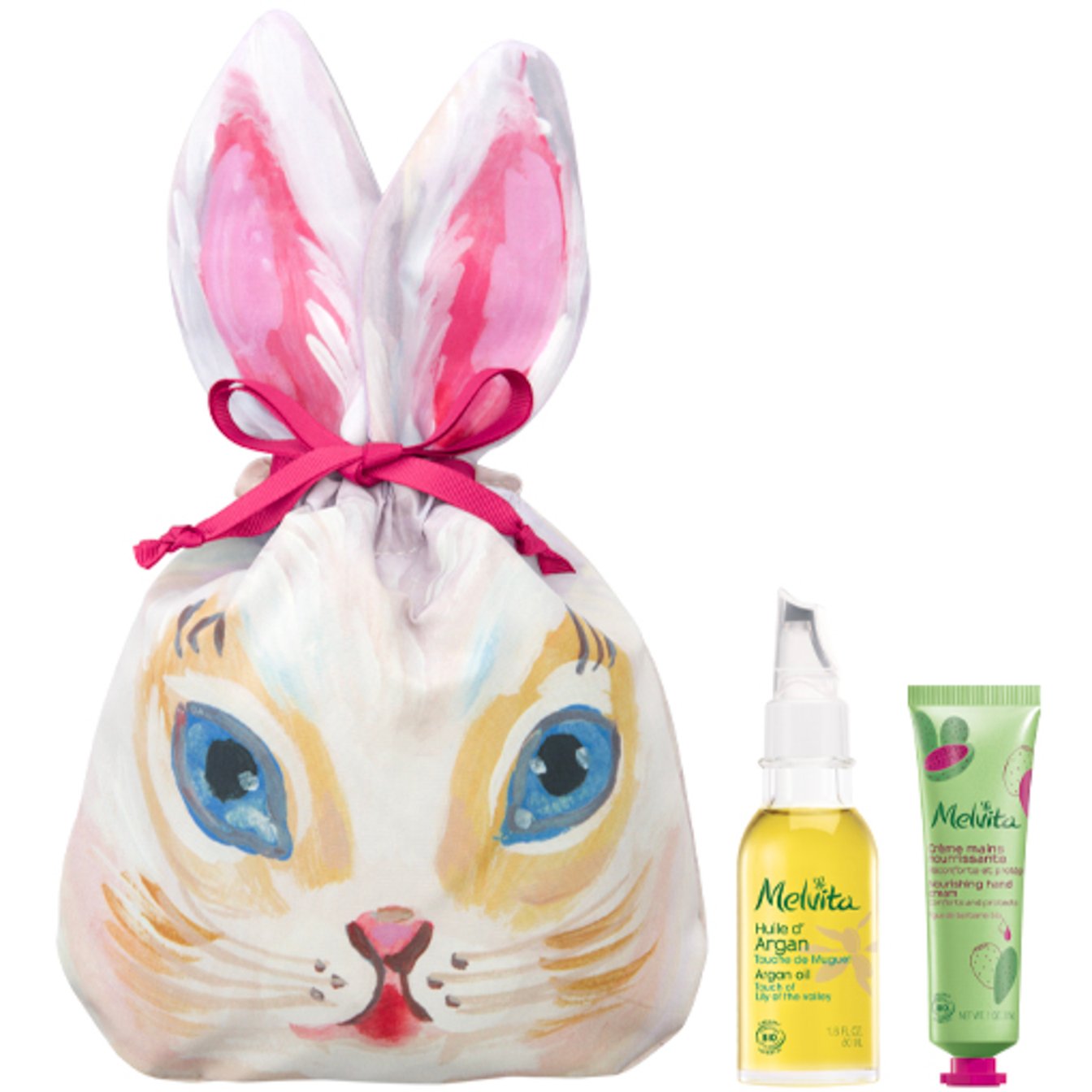 フランスでラッキーモチーフとしておなじみのラパンをあしらった巾着ポーチが印象的なコフレ。特別なシーズン限定の香りのアルガンオイル、ハンドクリームが入っています。