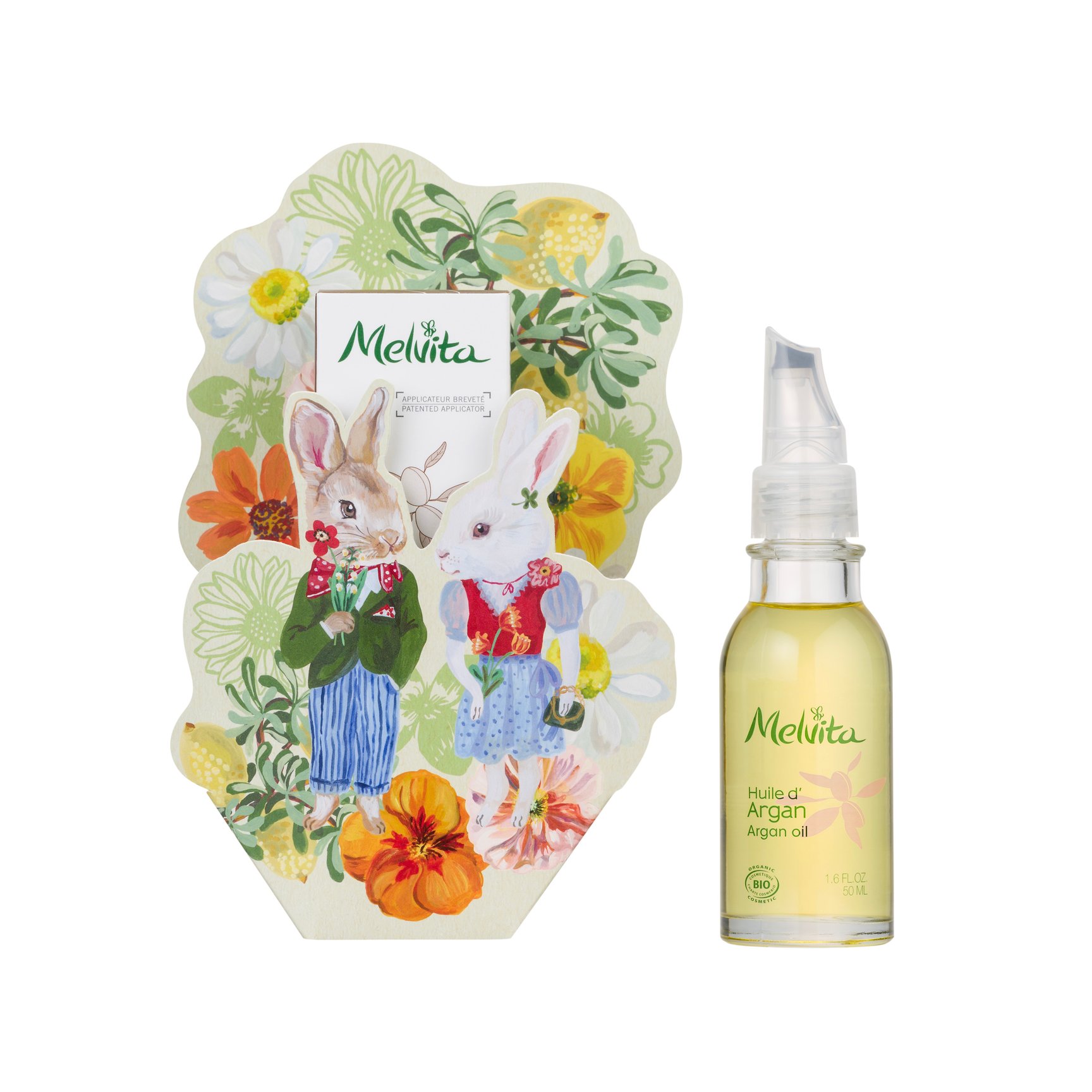 ベストセラーのアルガンオイルが、限定パッケージで登場。ラパンやアルガンの実、ローズなどが描かれたスリーブは、ペン立てとしても使えます。