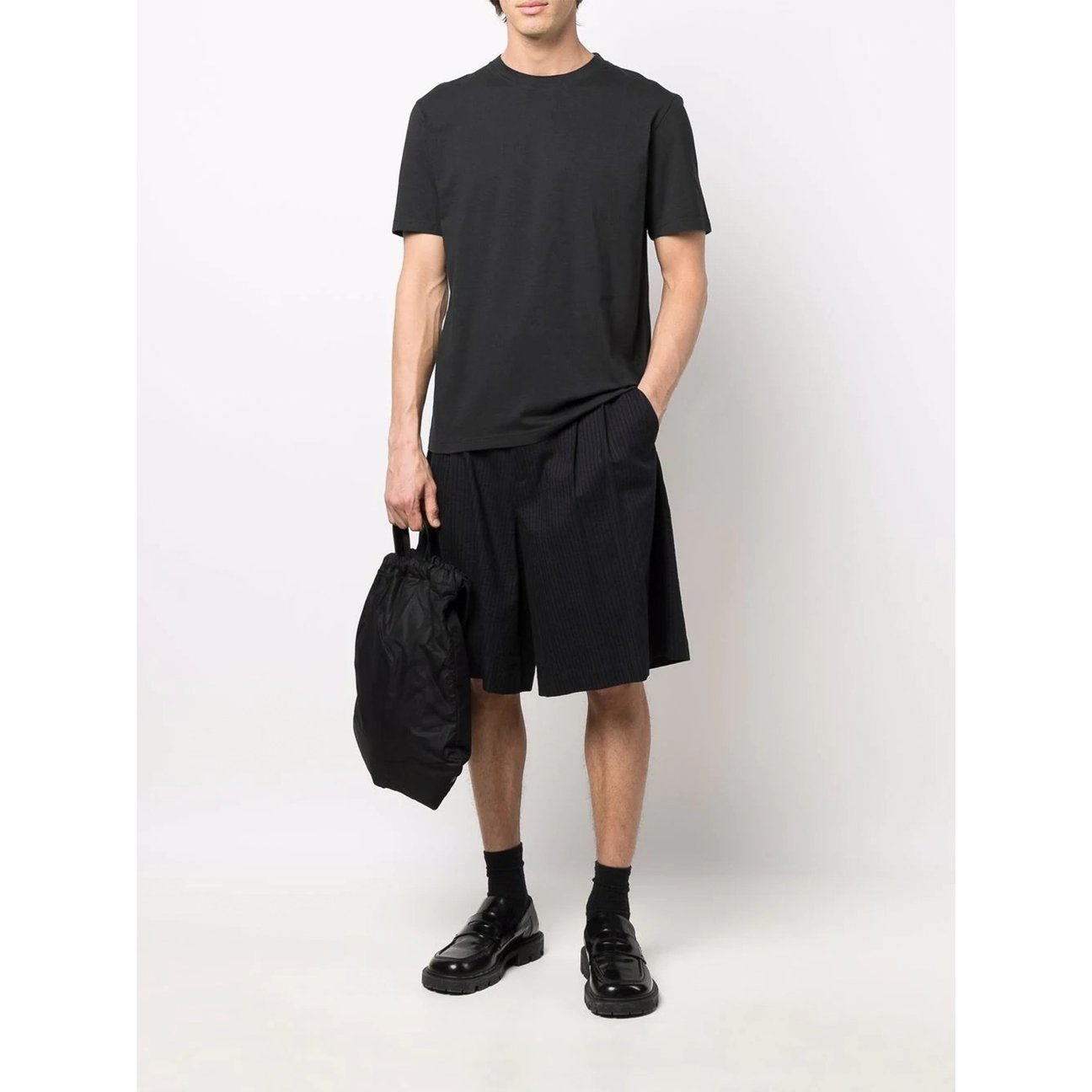 一枚でもインナーとしても活躍する、クオリティの高い無地Tシャツ。「メゾン マルジェラ(Maison Margiela)」のブラックTは、コシのある生地質とシグネチャーのホワイトステッチが印象的。一度袖を通すと、きっと病みつきになるはず。