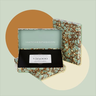 アーティストのデザインによるオリジナルのマーブル柄ボックス、またはマーブルのライニングが施されたブラウンのエコボックスから選択が可能(シューズアイテムは各ブランドのオリジナルパッケージに入れてお届け)。また、マッチズファッションは無料のオリジナルパッケージでも、贈り物に最適なデザインとなっています。