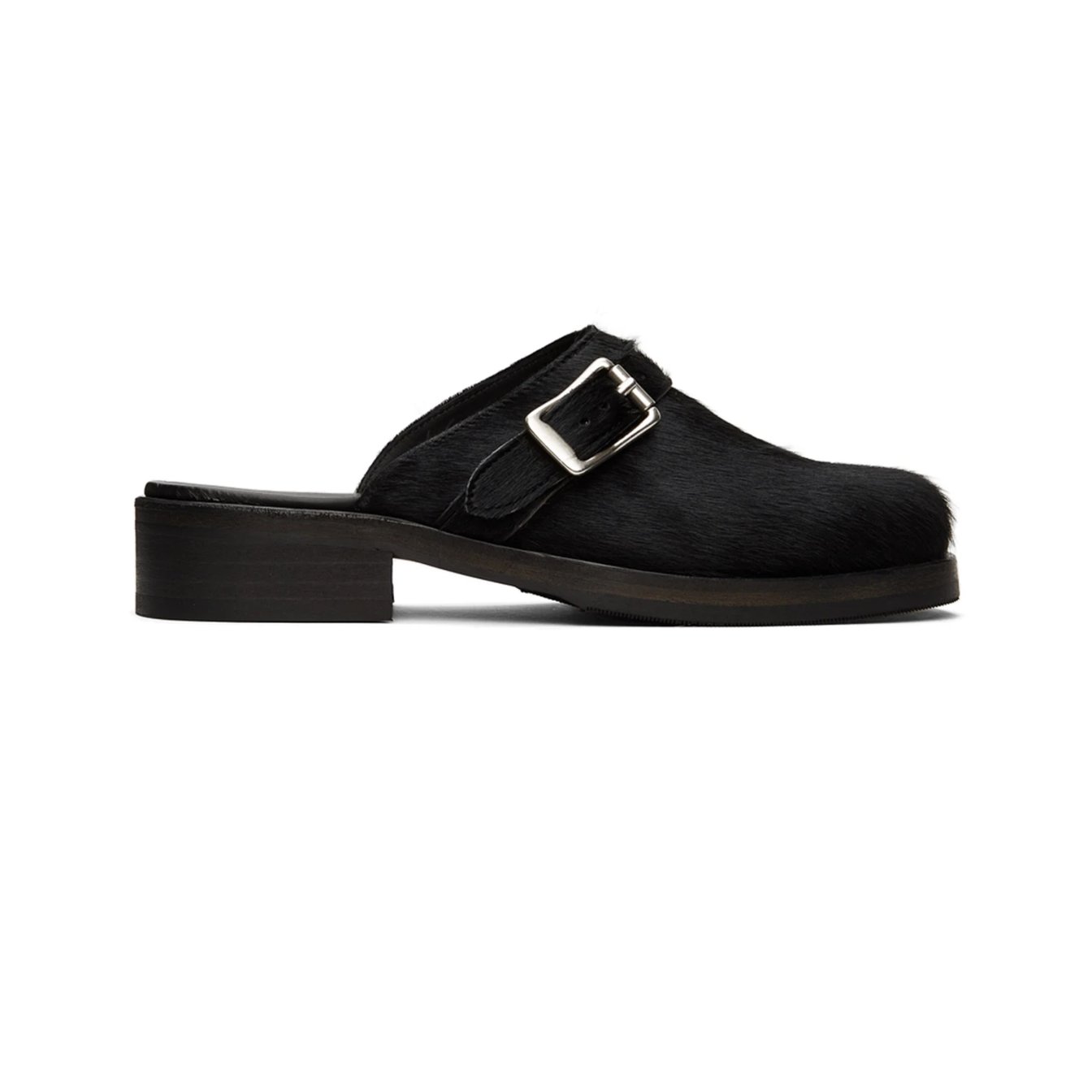 デイリースタイルの中に洗練されたエッジな要素もミックスさせる「アワーレガシー(OUR LEGACY)」のミュール。全体にはカウヘアーをあしらい、アウトソールはヴィブラム社製を採用するなどこだわりある一足。