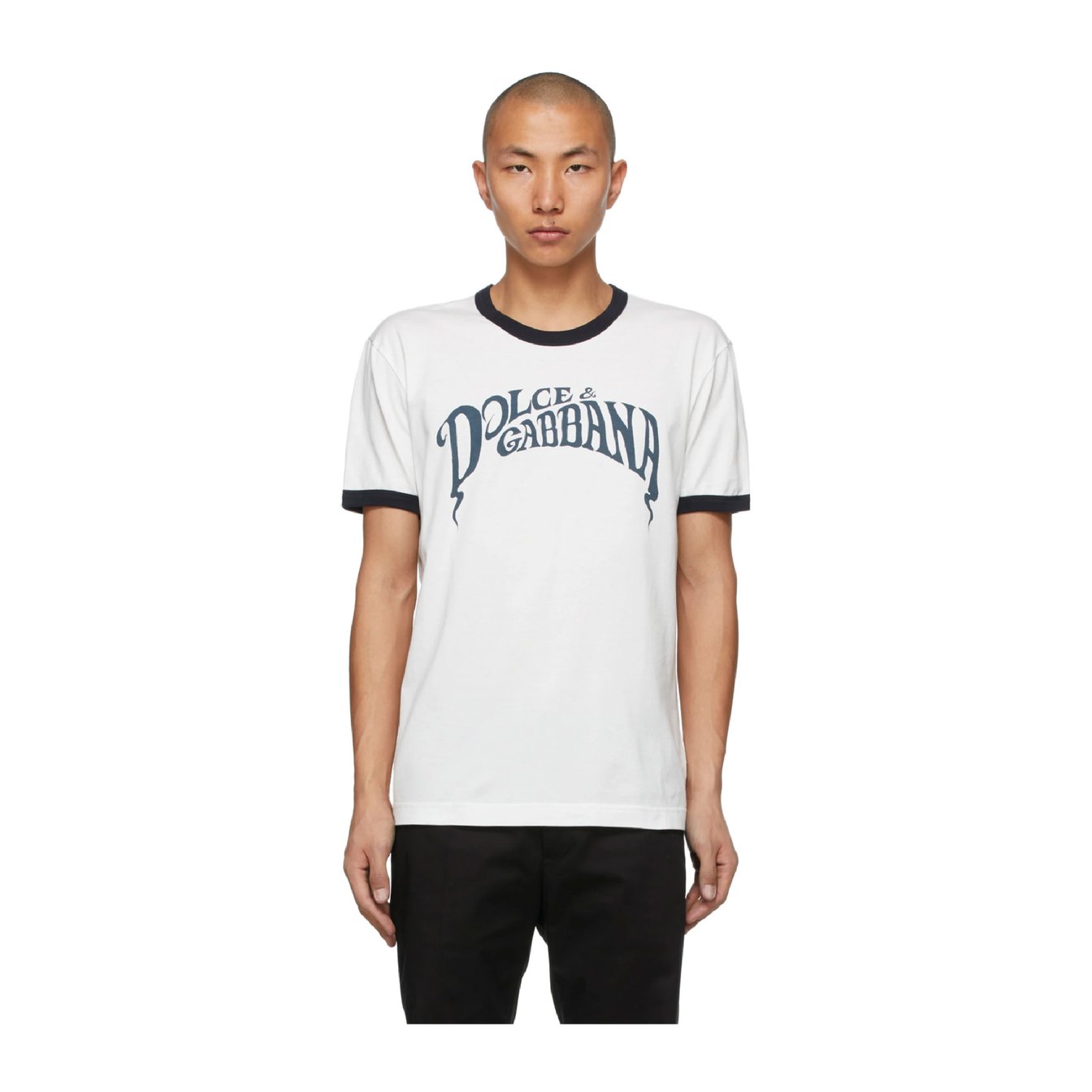Dolce&Gabbana ホワイト & ネイビー ロゴ プリント T シャツ ¥33,000(25%OFF) (関税・消費税込み)