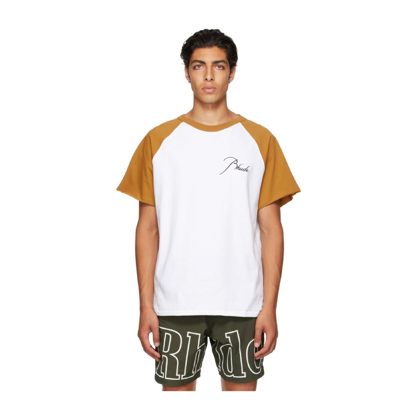 RHUDE タン&ホワイト ロゴ Tシャツ ¥26,000 (関税・消費税込み)