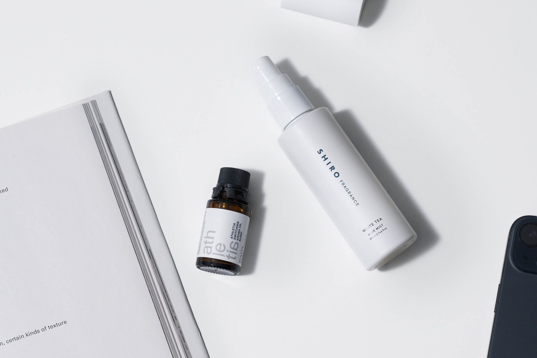 左から、アスレチア スイッチング アロマオイル / SLEEP、シロ ホワイトティー ヘアミスト