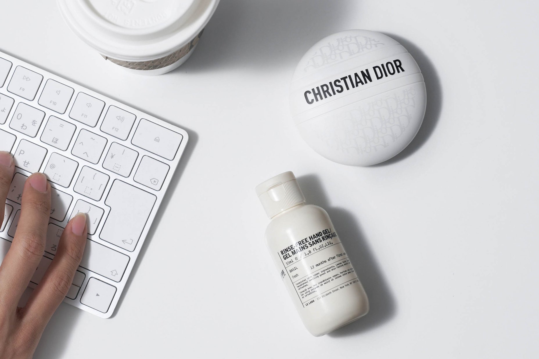 上から、ディオール ル ボーム、ルラボ リンスフリー ハンドジェル バジル