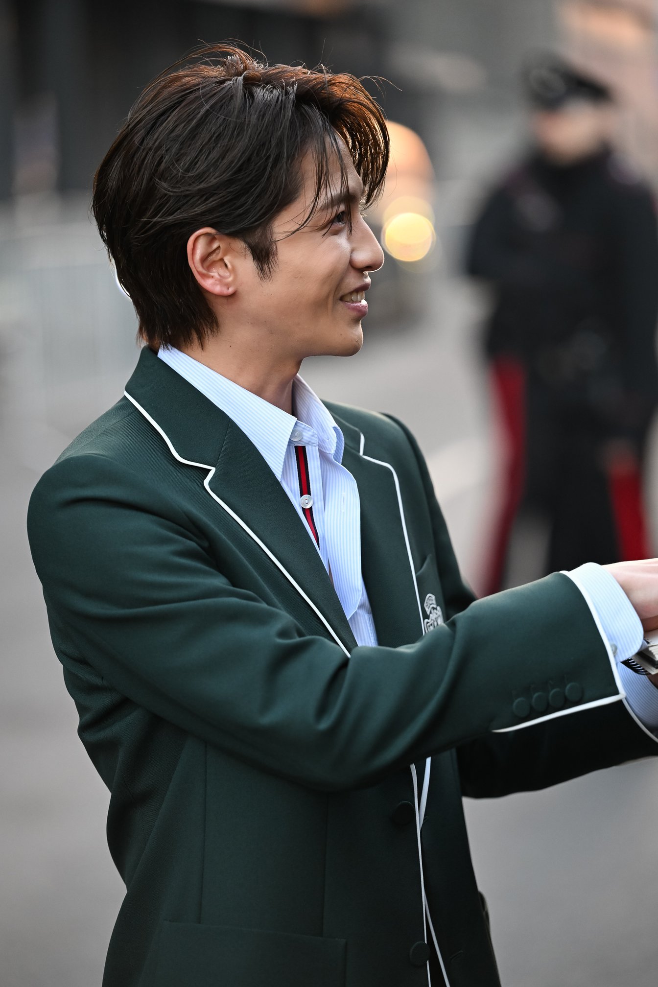 ミラノ・メンズファッションウィーク初日、志尊淳さんがグローバル・ブランドアンバサダーとして「グッチ(GUCCI)」のショーに参加。新クリエイティブ・ディレクター サバト・デ・サルノ(Sabato De Sarno)による初のメンズショーに出席しました。渡航前にダークカラーにチェンジしたという新しいヘアスタイルです。