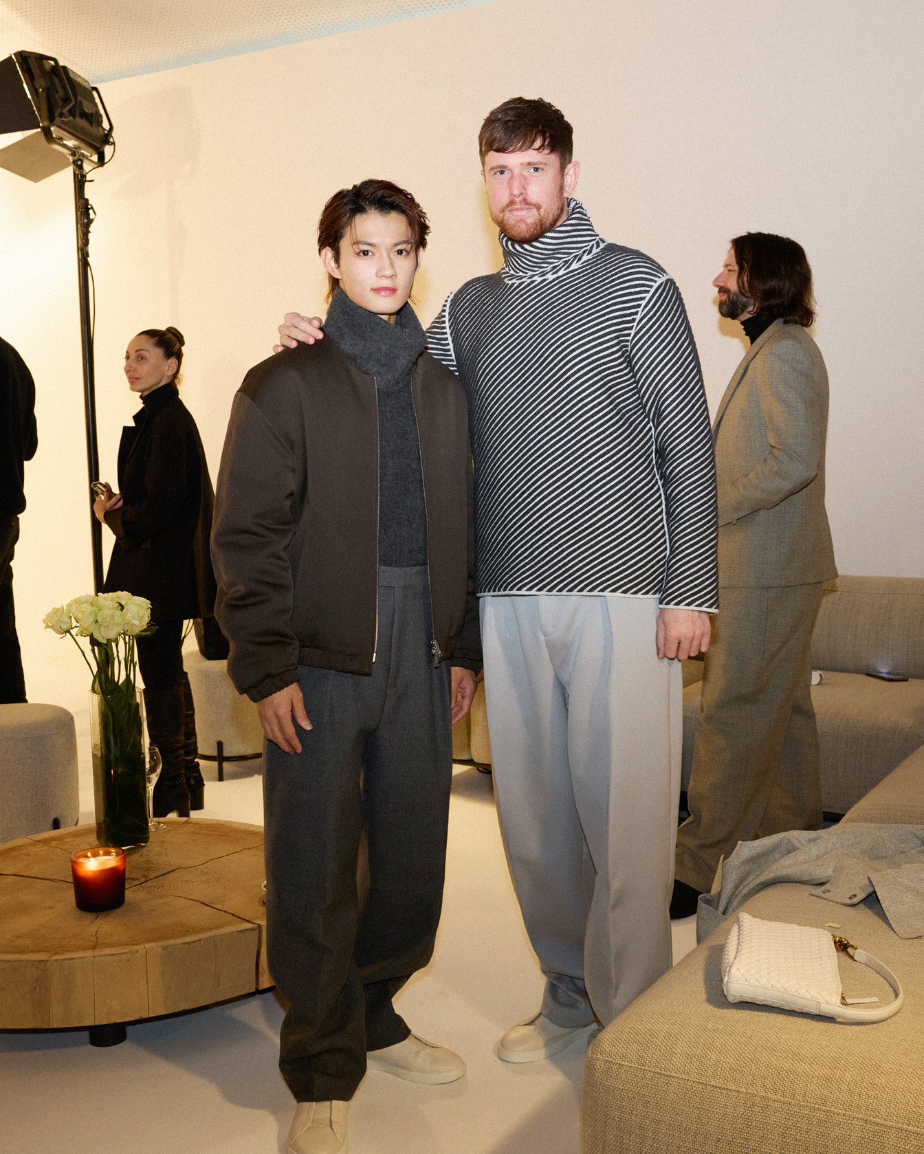 会場では、韓国人俳優 イ・ミンホや台湾の国民的歌手 グレッグ・ハンら世界各国から集まったセレブリティとの交流も。また、ショー終了後のバックステージでは、アーティスティック ディレクターのシルヴィア・フェンディ(Silvia Venturni Fendi)との2ショットをキャッチ。