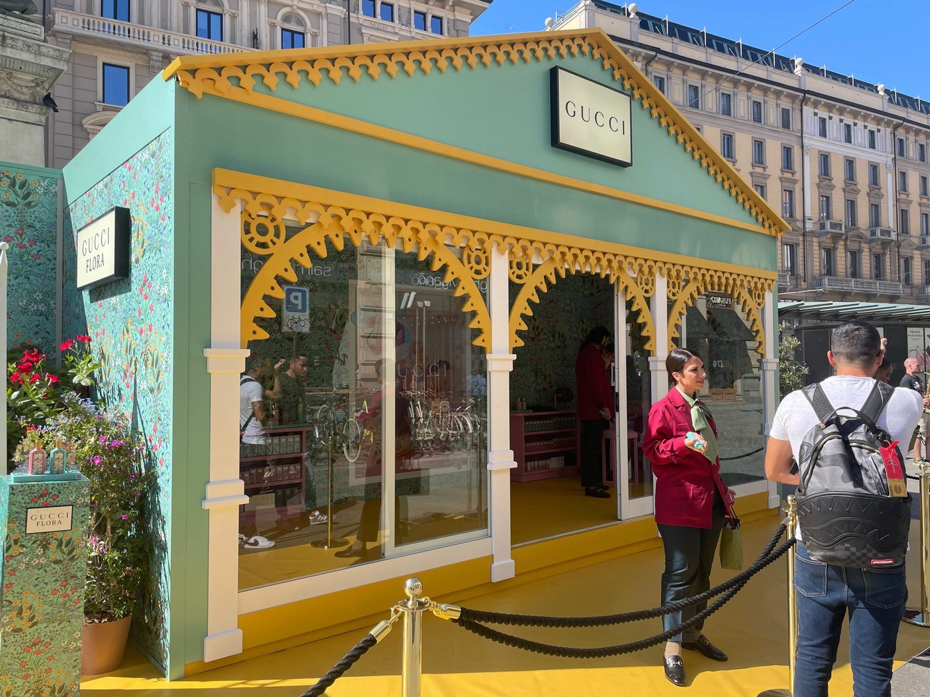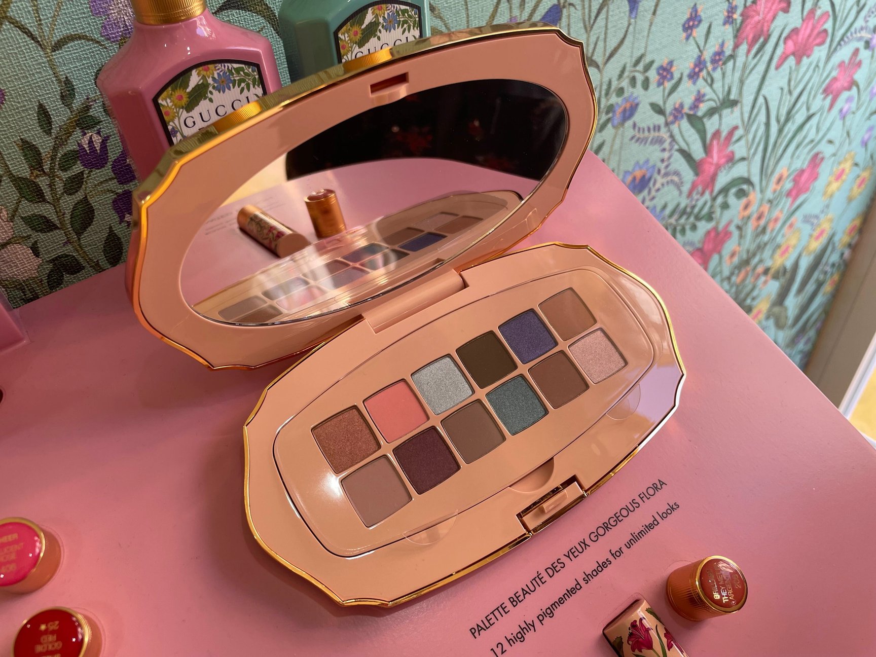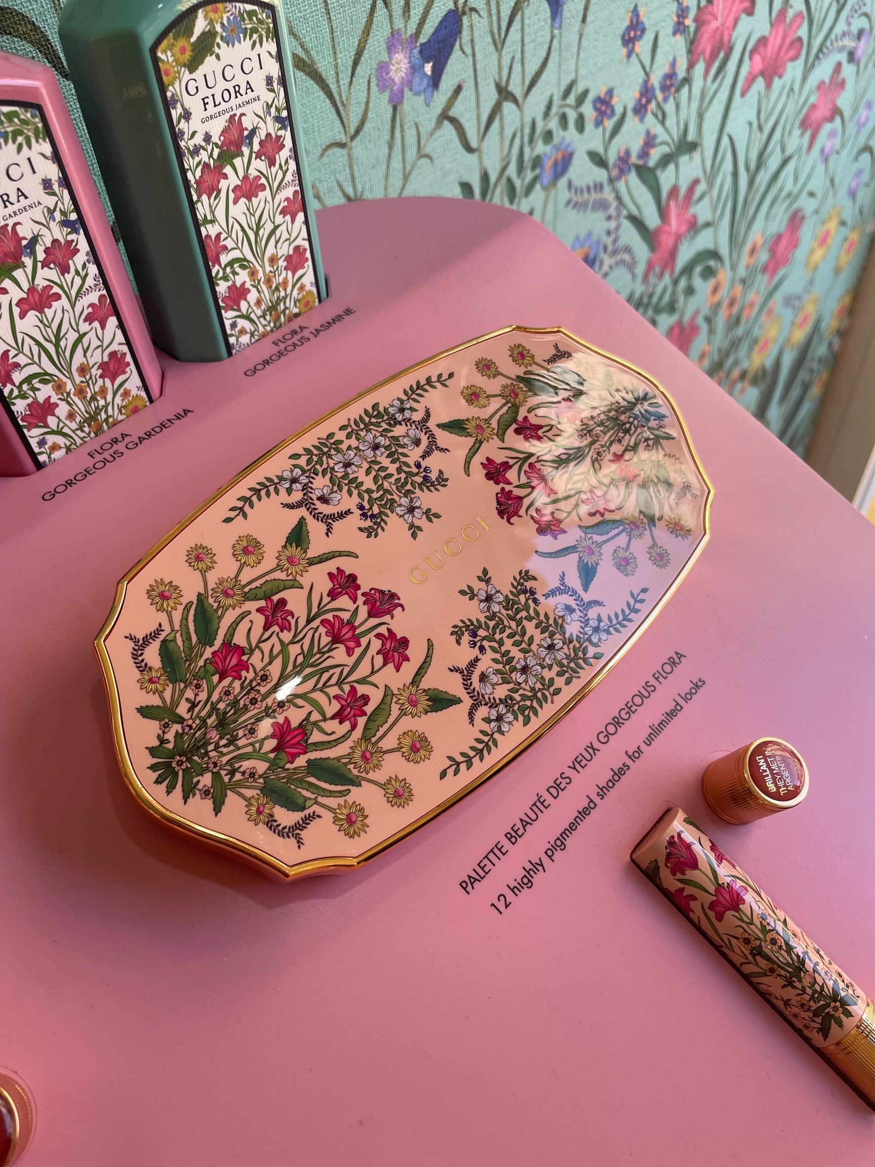 街角で「グッチ ビューティ」のポップアップを発見!日本でも発売したばかりのメイクアップコレクション「GUCCI BEAUTY Flora Collection」を取り扱っていました。パレットの花柄がキュート。ジャレッド・レト似の店員さんが案内してくれました。