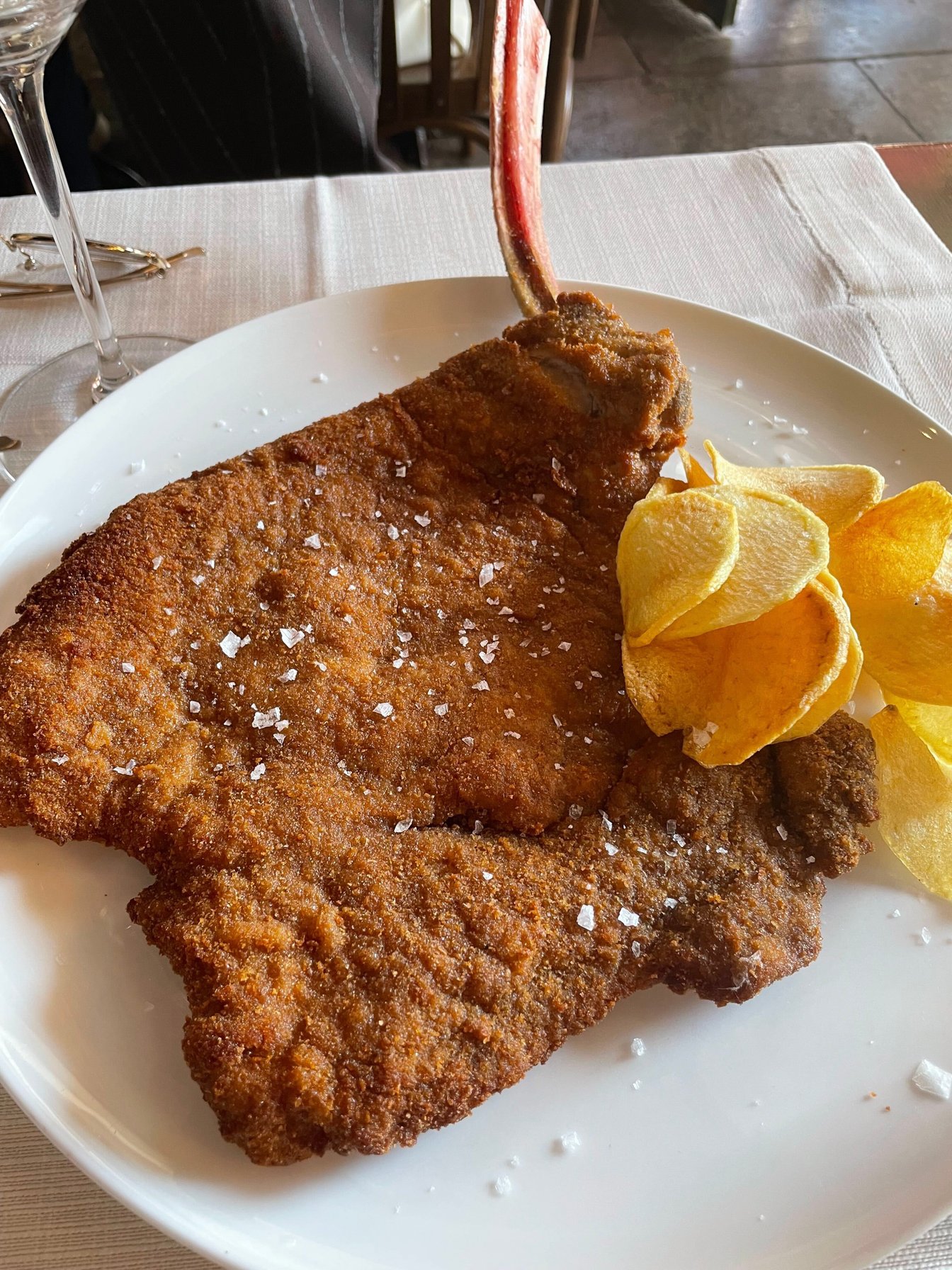 嵐の前の腹ごしらえ。ハードなコレクションウィークを乗り切るべく、ミラノの名物料理であるカツレツ(いわゆるミラノ風カツレツ)をオーダー。日本のトンカツと違って薄いので、軽くぺろっと食べられちゃいます。(とはいえ最後の方はソースが欲しくなってくる・・・)