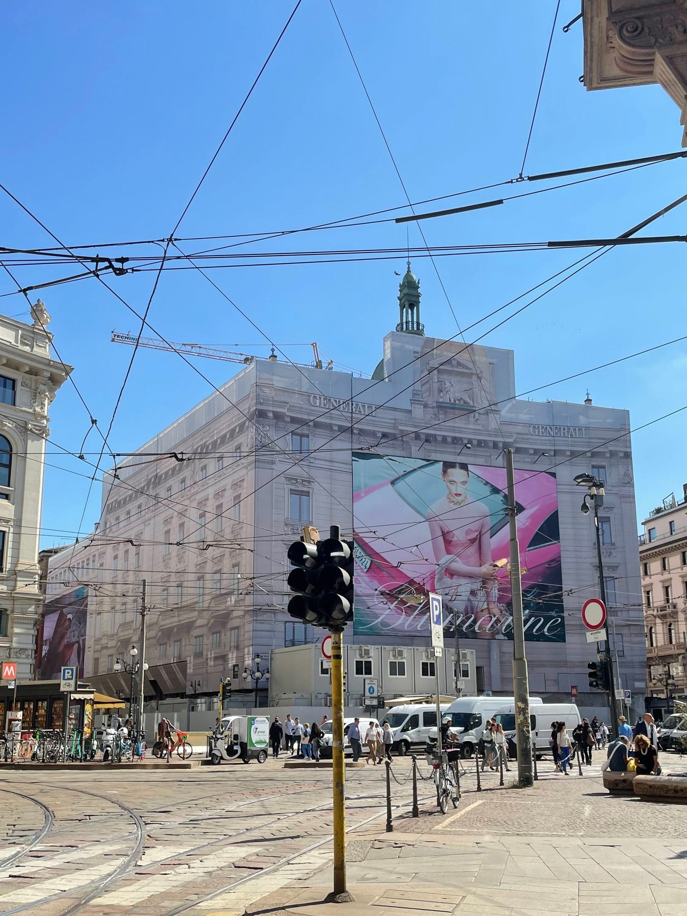 ファッションウィーク初日の9月21日、ミラノは晴天。日差しは強いものの、ヨーロッパ特有のカラッとした空気が過ごしやすい季節です。中心地のドゥオーモ周辺は人通りも多く、街ゆく人はみなマスクを外して観光や買い物を楽しんでいます。(地下鉄などの公共機関ではマスクの着用が義務付けられていて、着用率は8割くらいでした)