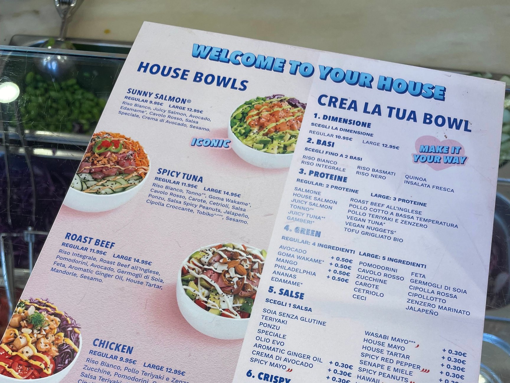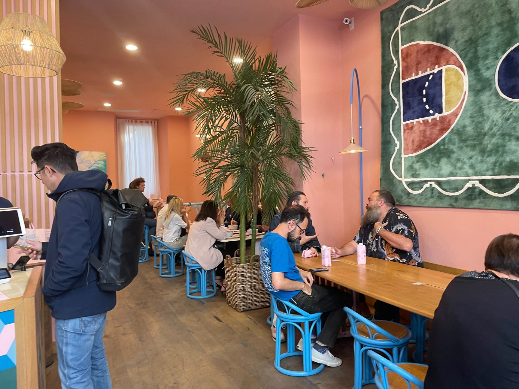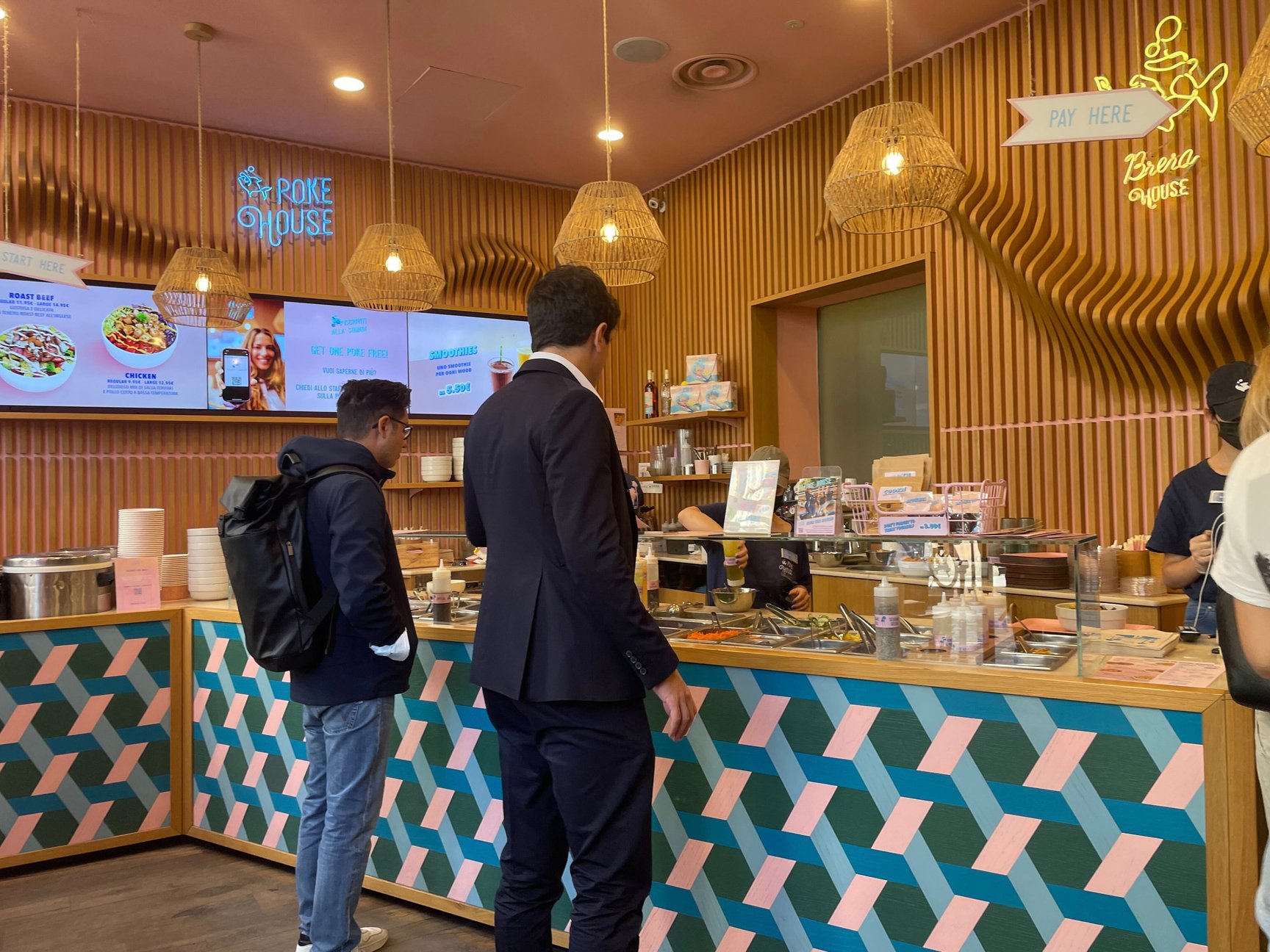 ミラノで最近人気だというフードのひとつが「POKE」。ハワイ発祥で、海鮮と野菜をサラダボウルのように盛り付ける料理です。店内はポップなデザインで写真映えしそう。