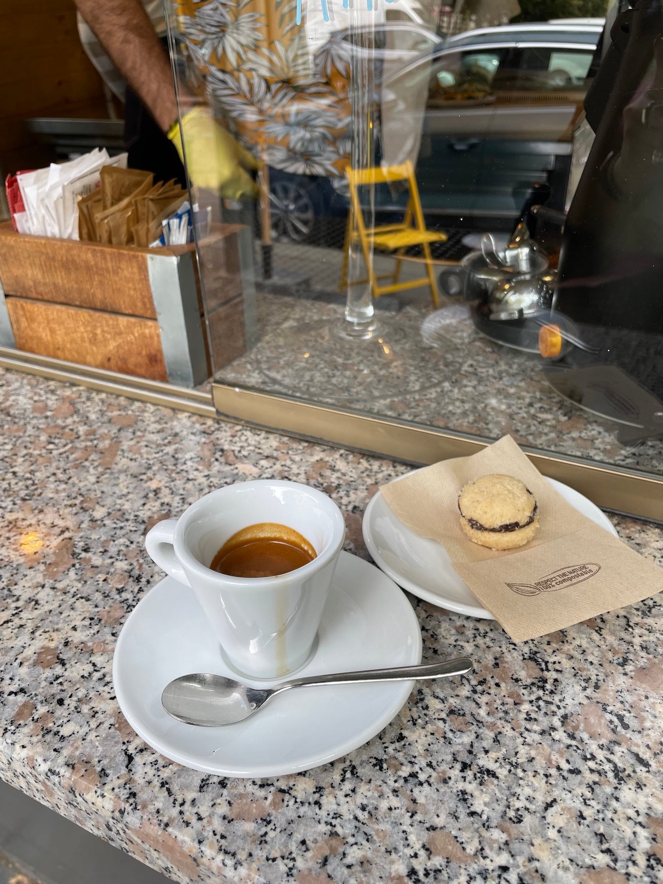 ミラノコレクションの取材中は、時間があればエスプレッソスタンドで一服。イタリアで「caffe(カッフェ)」といえばエスプレッソのこと。立ち飲みなのでサクッと5分程度ですが、アドレナリンが放出されっぱなしのファッションウィークでは、深呼吸して気持ちを落ち着かせるためにも大切な時間です。気がついたら朝から何杯も、カフェイン摂取過多になりそうなほど飲んでしまう日も。
