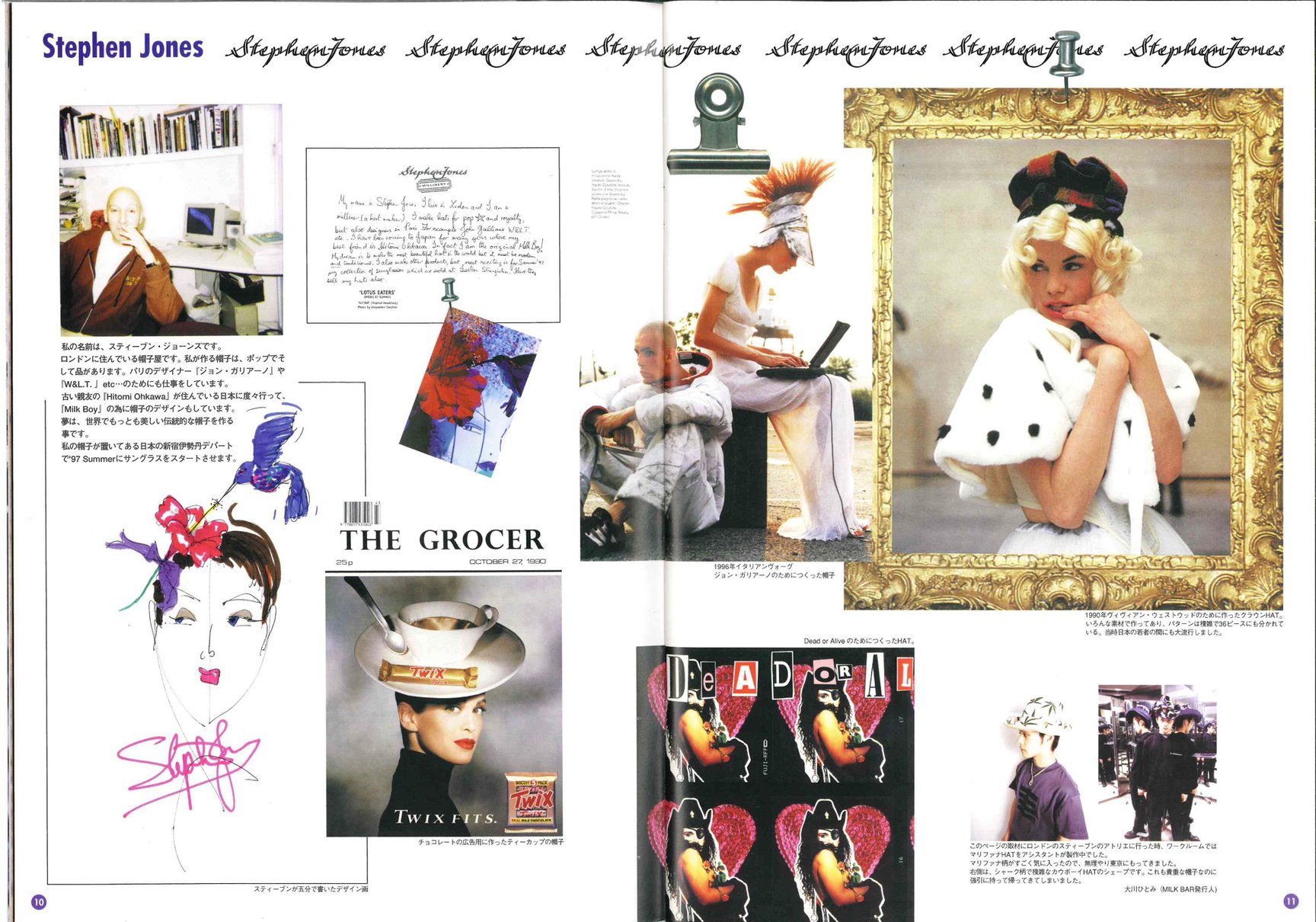 スティーブンがいたから、イギリスでいろんな人に出会えたなと思っています。彼とはロンドンのクラブで出会ったんですが、彼の紹介で、キム・ジョーンズ(Kim Jones)とも知り合えたし、ロンドンでたくさんの人と仲良くなれたから。スティーブンは、ミルクやミルクボーイがファッションショーをやる度に、毎回帽子を作ってくれるんですよ。1990年代に店頭で販売していた雑誌「MILK BAR」にも参加してくれました。