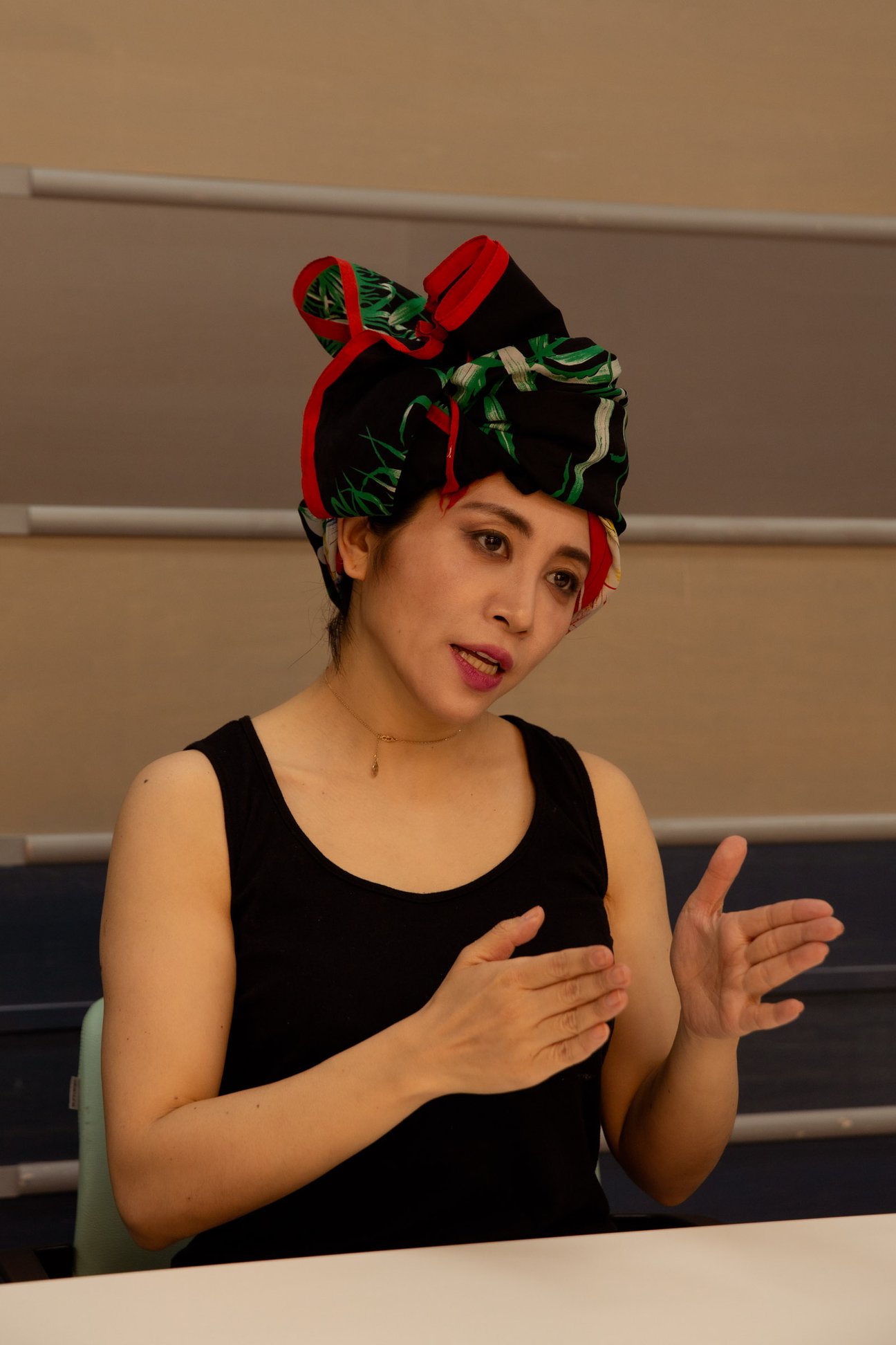 ースカーフのターバンがとても印象的ですが。そのターバンはどこのブランドですか?ターバンの巻き方もほかの人には真似できない、美しさです。