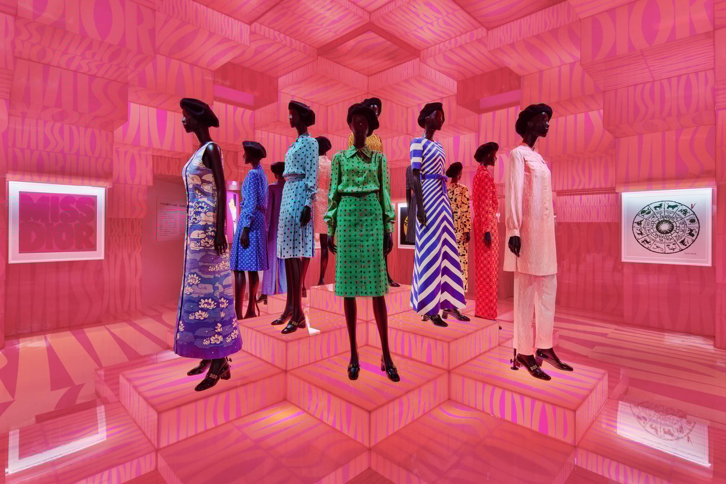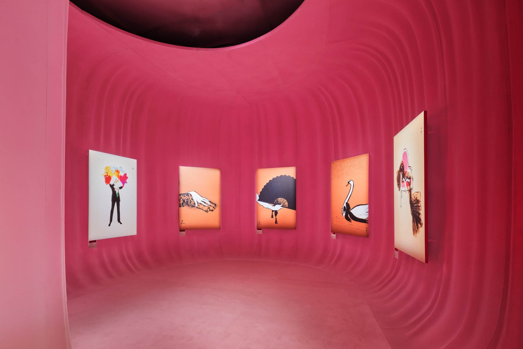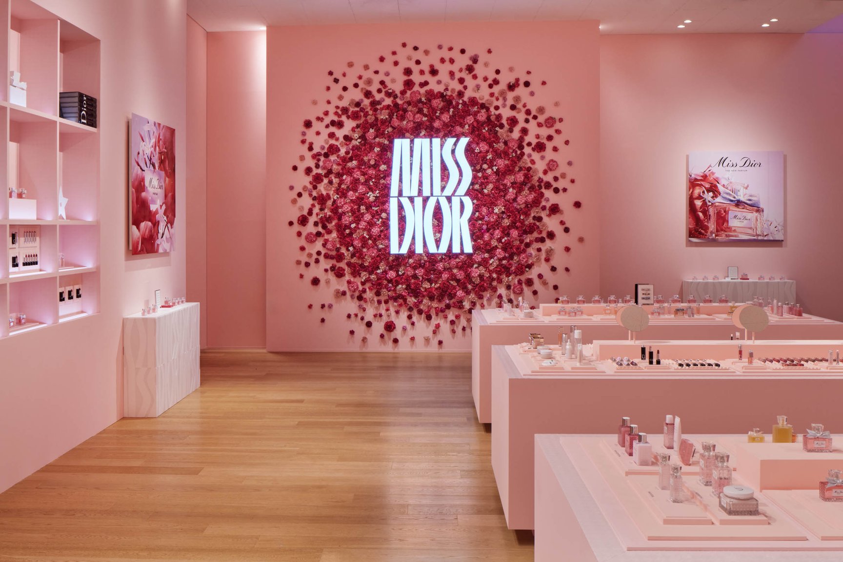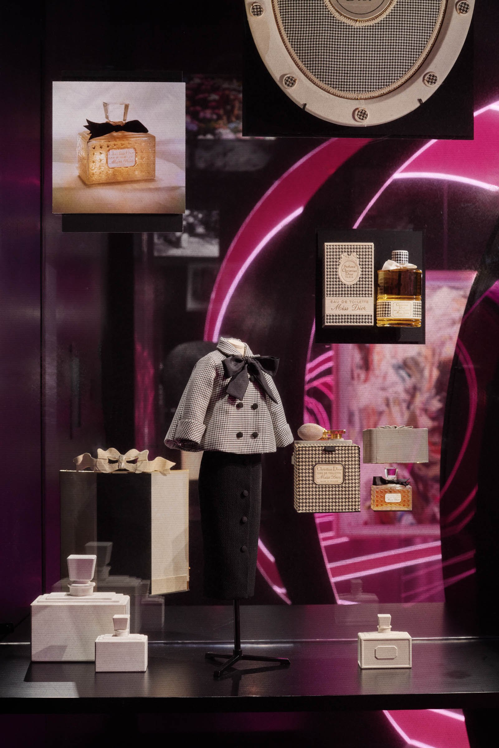 伝説的なミス ディオールのリボンに導かれながら会場へ。鮮やかなピンクの世界の中に飾られているのは、パリの道端でディオールが発見したラッキースターからミス ディオール ミニチュアドレス、パルファン・クリスチャン・ディオールの初版広告、カトリーヌのポートレート。さらにはナタリー・ポートマンのアンバサダー就任後、初の広告キャンペーンイメージ、そしてクルジャンが調香したミス ディオール パルファンまで、歴史を刻んできた象徴的なアイテムたちが出迎えてくれます。