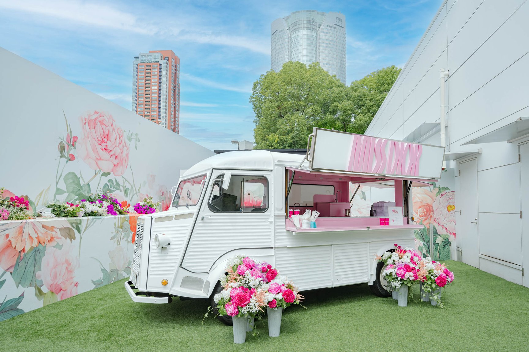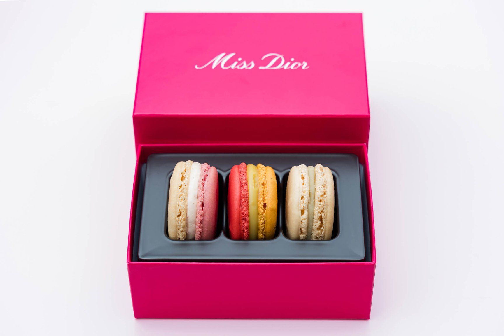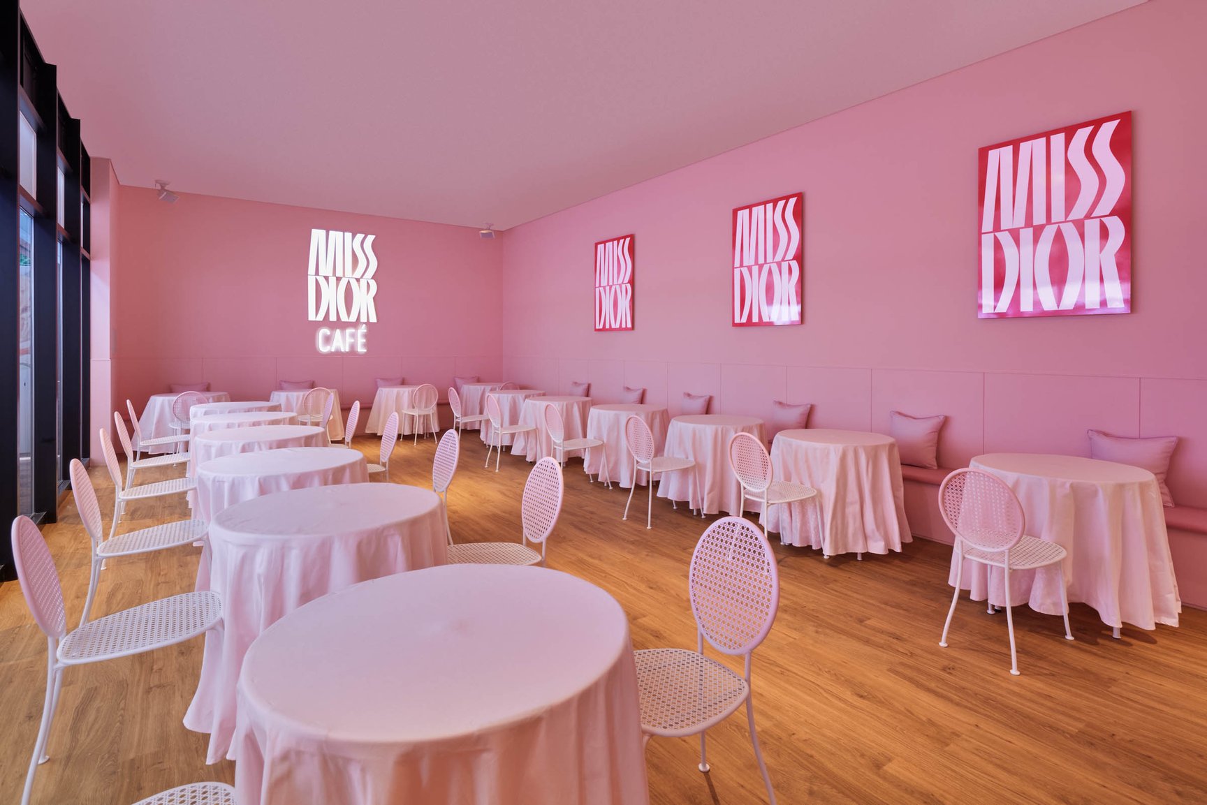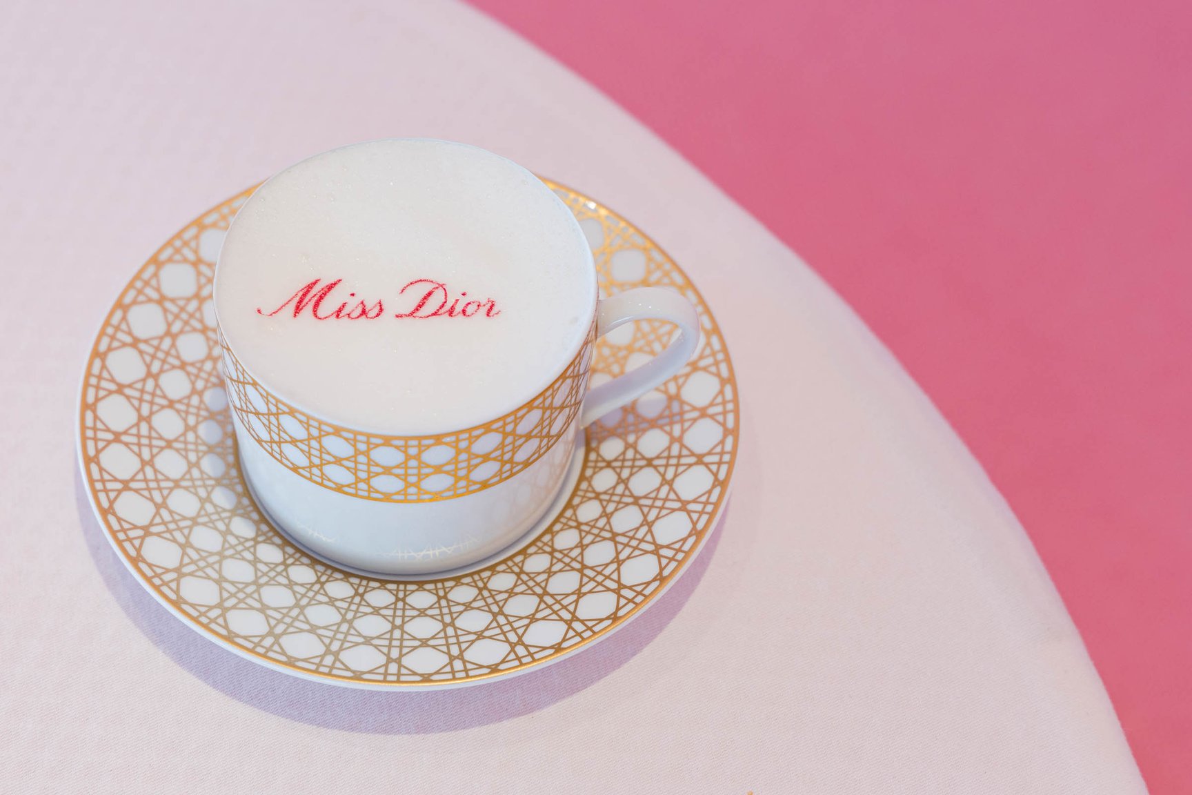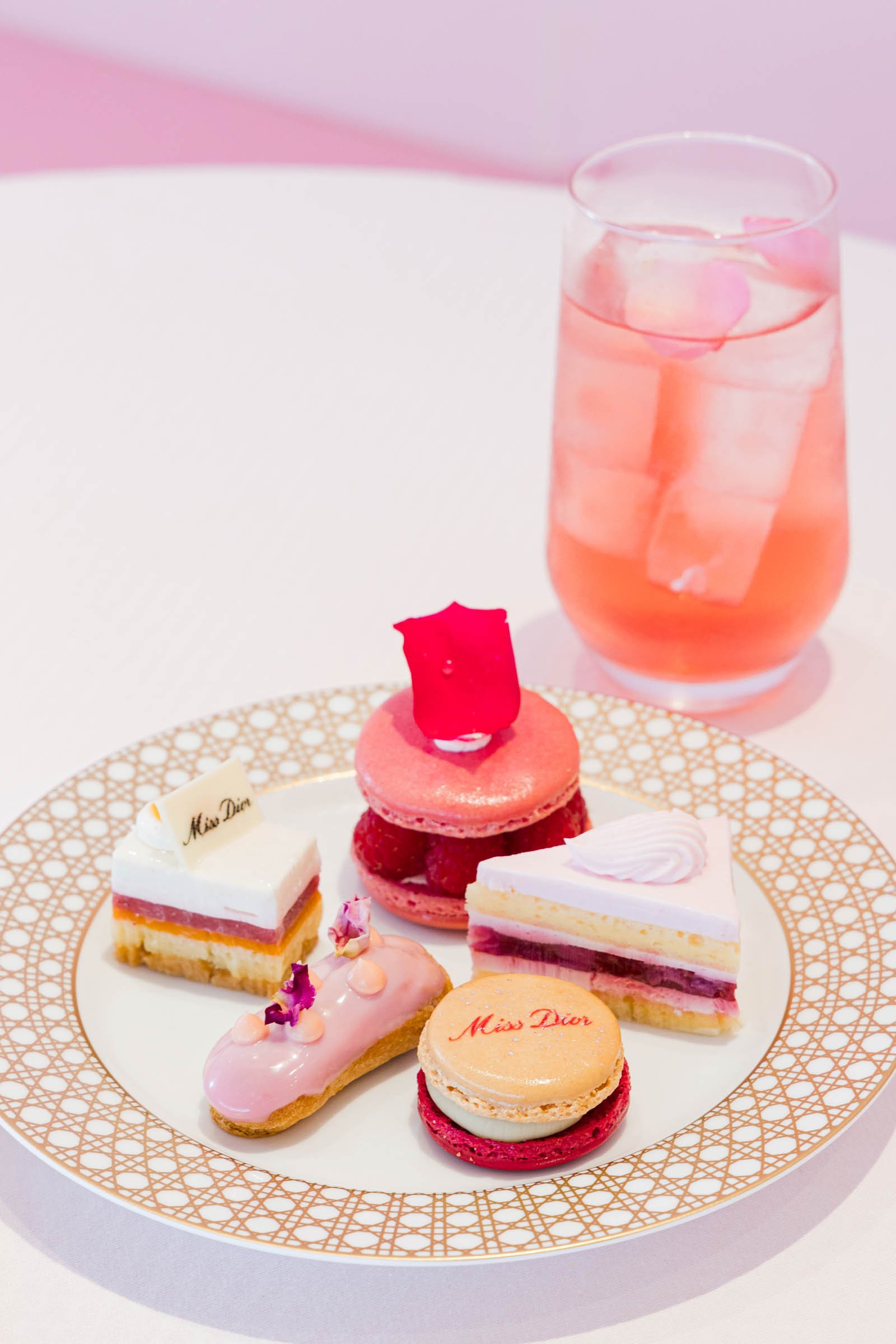 入場者限定で入店できるカフェも併設。ミス ディオールの世界にインスパイアされ、「ピエール・エルメ・パリ(PIERRE HERMÉ PARIS)」とコラボレーションしたオリジナルのマカロンや、花々や香りを彷彿とさせるシグネチャー デザート プレート、ピンク ペタルが美しいスペシャル ドリンクが用意されています。(マカロンとドリンクはテイクアウト可能)