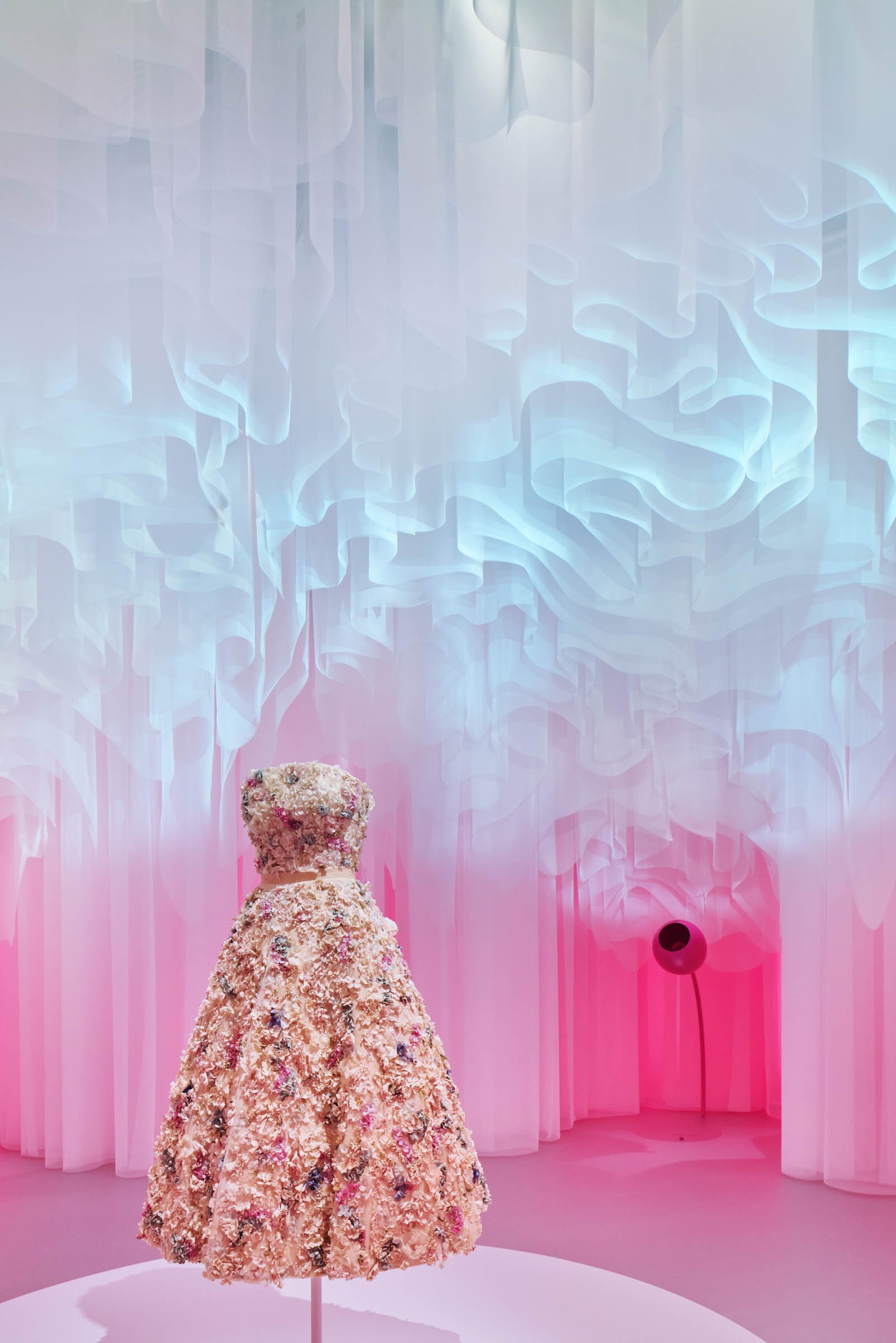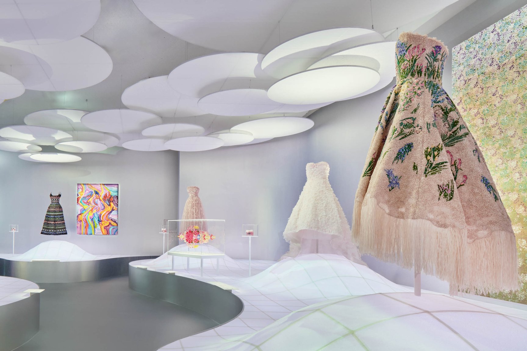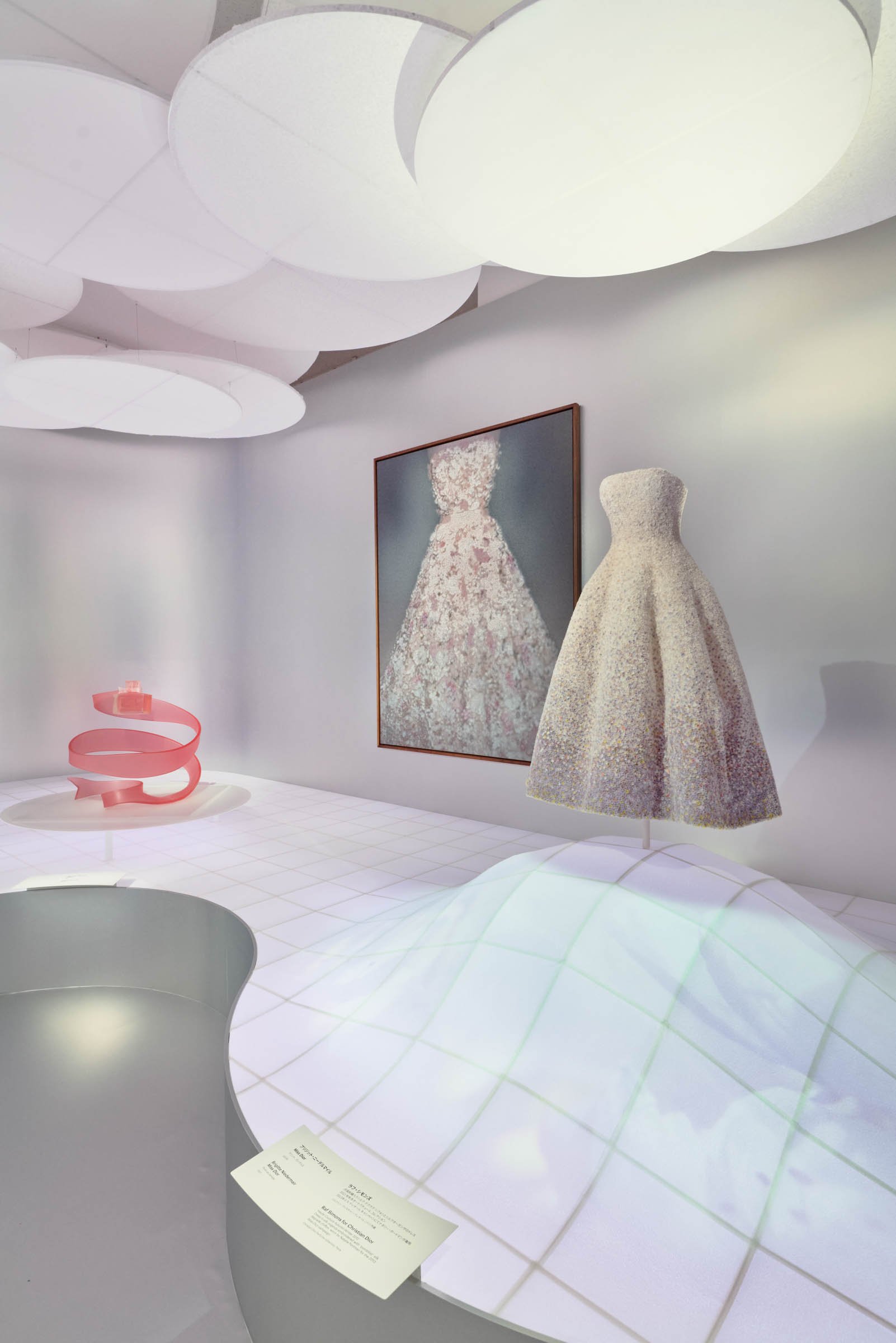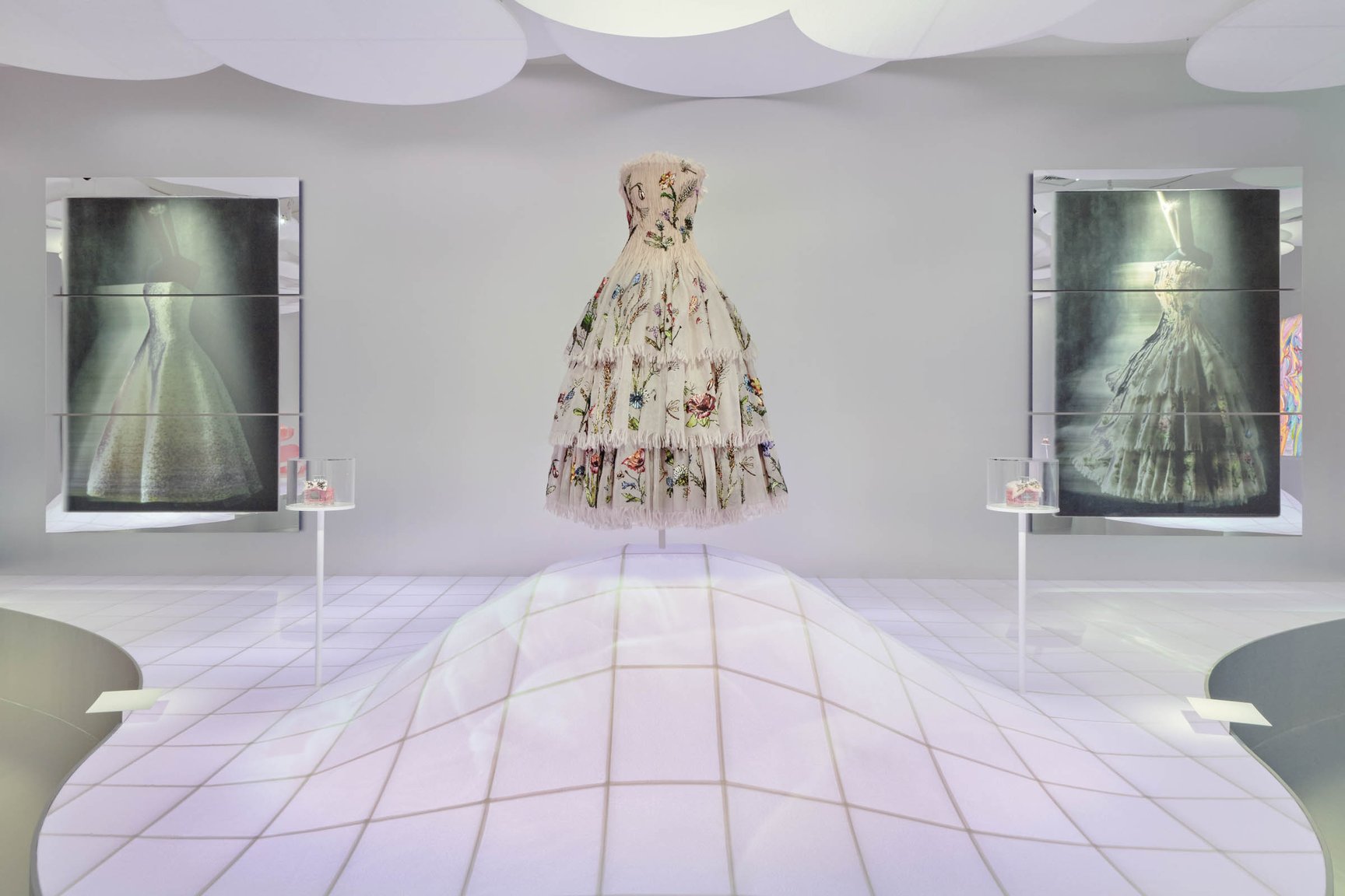 1949年、クリスチャン・ディオールは春夏オートクチュール コレクションでメゾンを象徴する香りを構成する特別な花々を、幾千ものシルクフラワーが刺しゅうされたミス ディオール ドレスでたたえました。以来、クチュール メゾンを率いた歴代クリエイティブ ディレクターたちのインスピレーション源となっています。ミューズを務めるナタリー・ポートマンが着用したドレスが勢揃いしたこの空間は、洗練と自由が交差。ラフ・シモンズ、マリア・グラッツア・キウリによって創造されたドレスには、繊細な刺しゅうの花々が咲き誇っています。