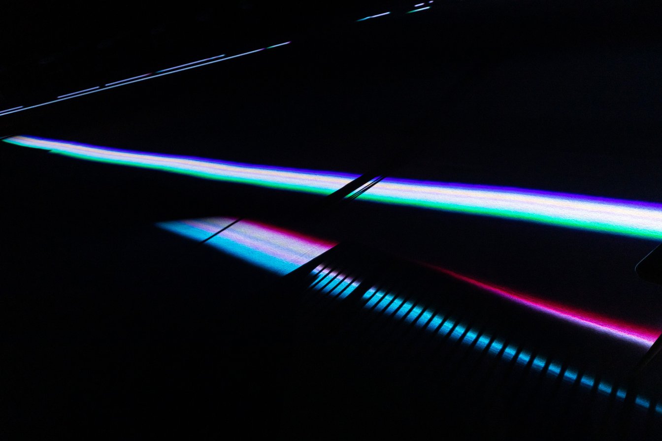 ショーが終わり、暗転した会場。無数の流星のようにレーザービームが走る"Heaven"と題された光の演出の中、オオスミ氏の写真と献花台が設置された。
