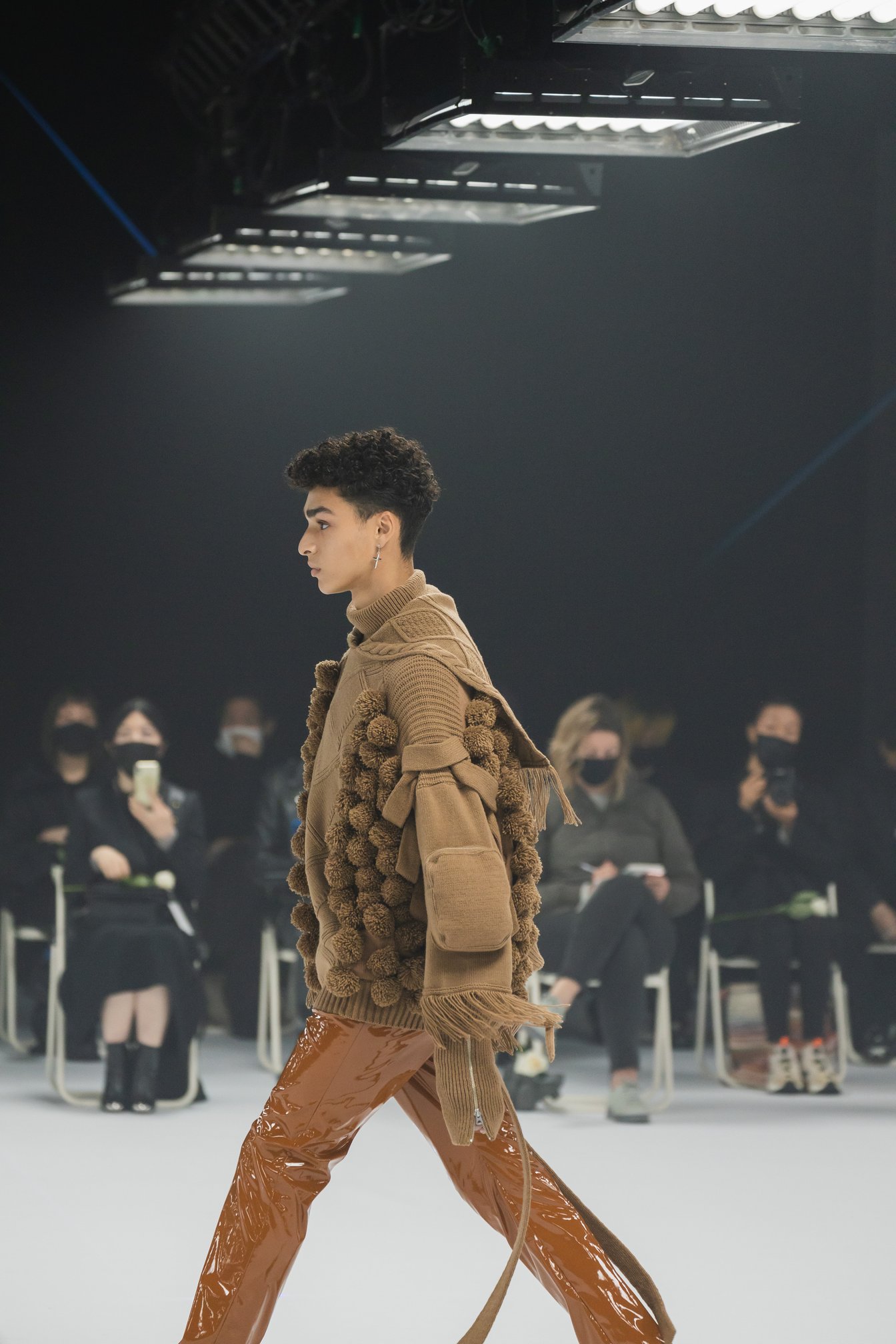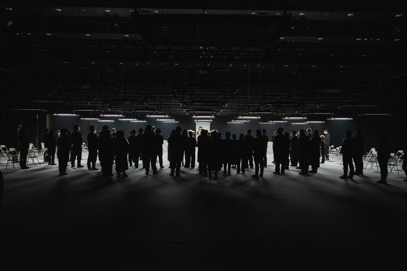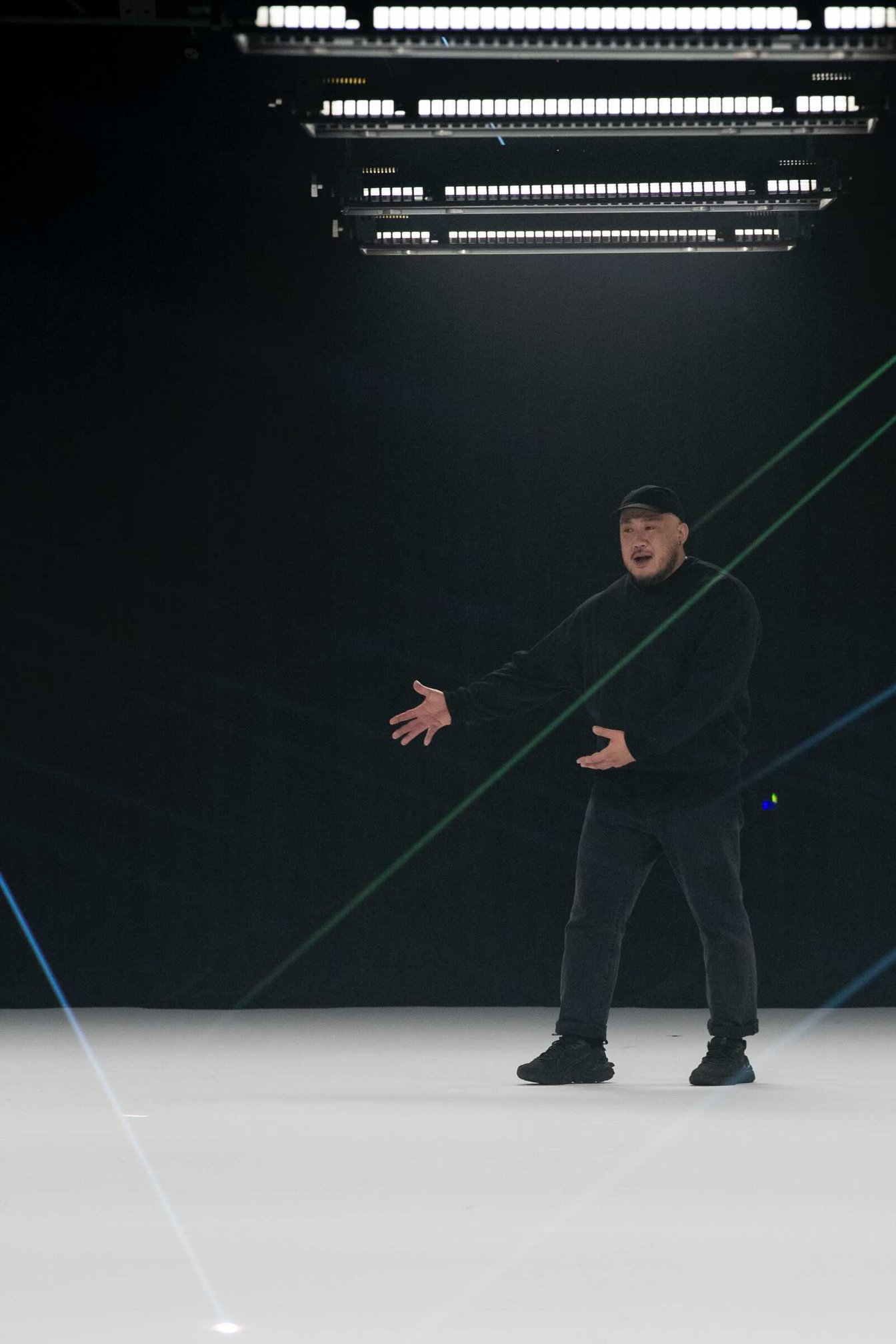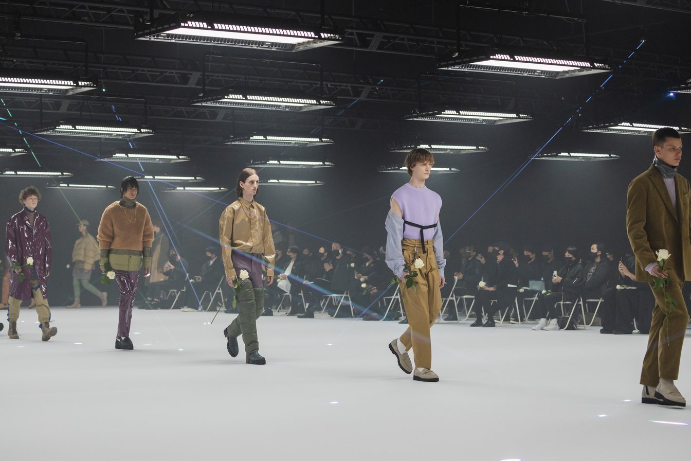 定刻の19時を少し過ぎて、ショーが幕を開けた。ミスター・ジェントルマンと切っても切れない関係なのが音楽で、今回はKIRI、DSKE、瀧見憲司というブランドと関わりの深い3人の選曲を、バトンをつないでいくようにエディット。1月に急逝したSOPHIEの楽曲でAutechreがリミックスした「BIPP」も起用された。
