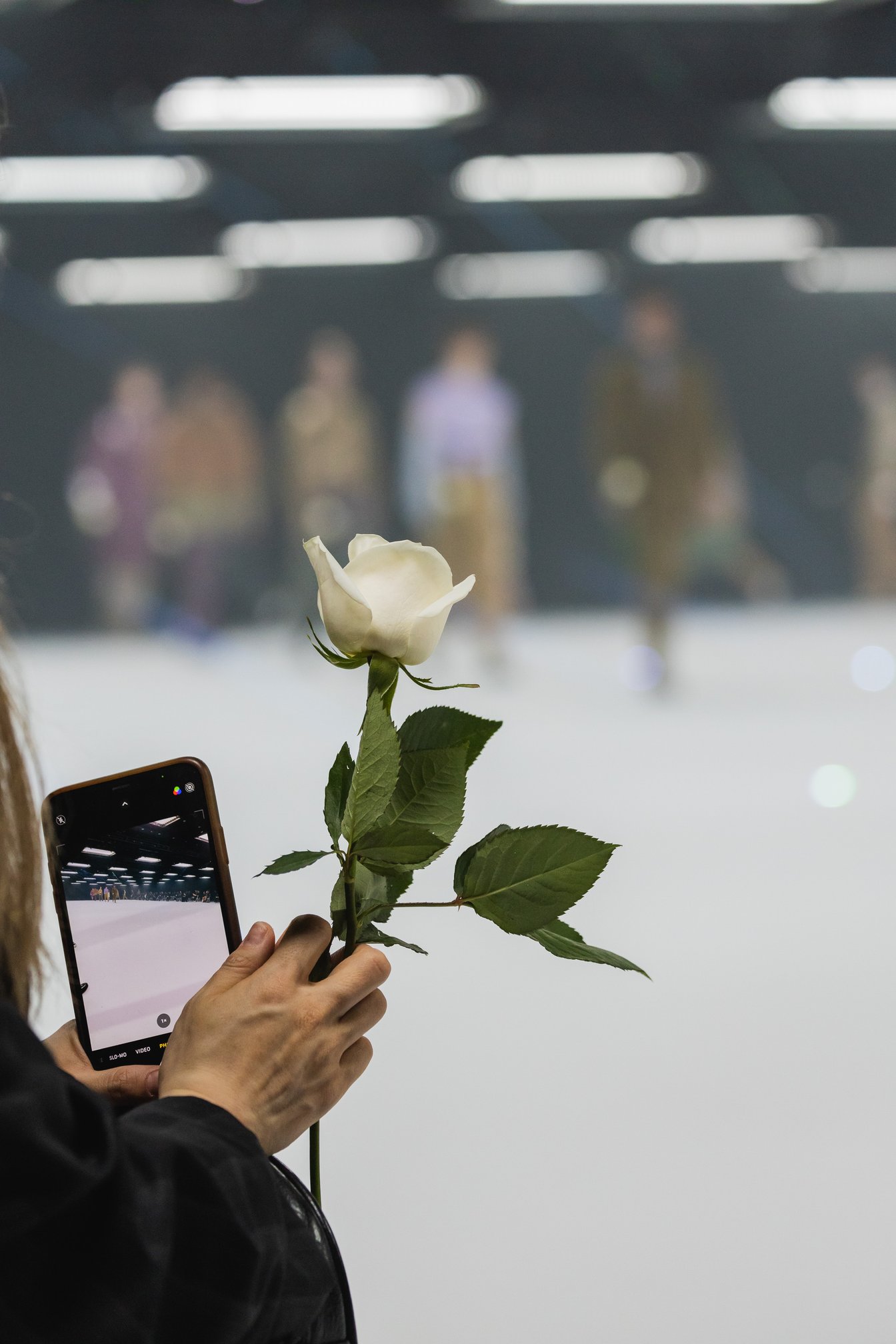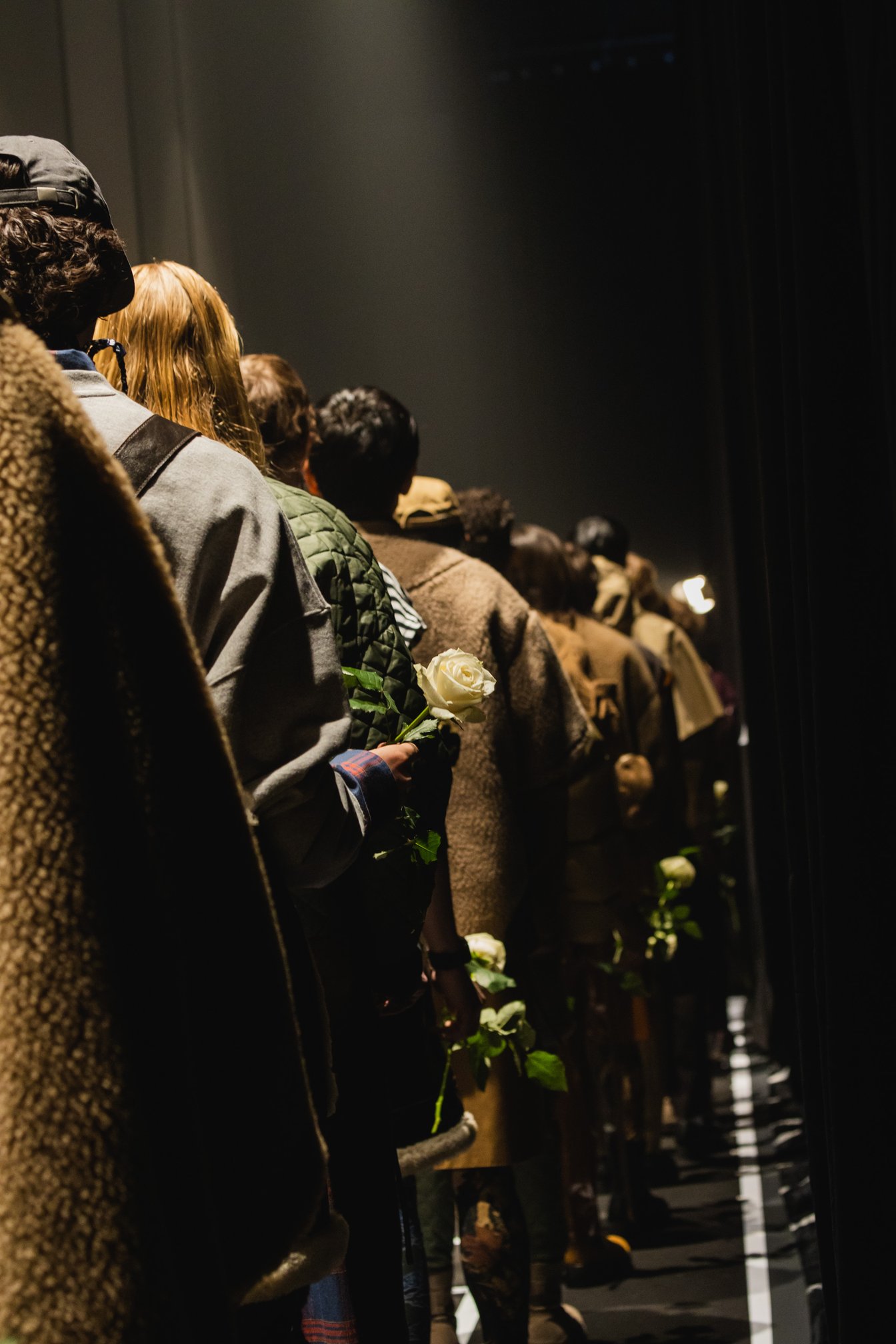 白い薔薇を手にしたモデル全員がランウェイに揃う、美しいフィナーレで起用された楽曲は、Fra Lippo Lippiの「Angel」。大きな天使はどこかで見守っていたのだろうか。