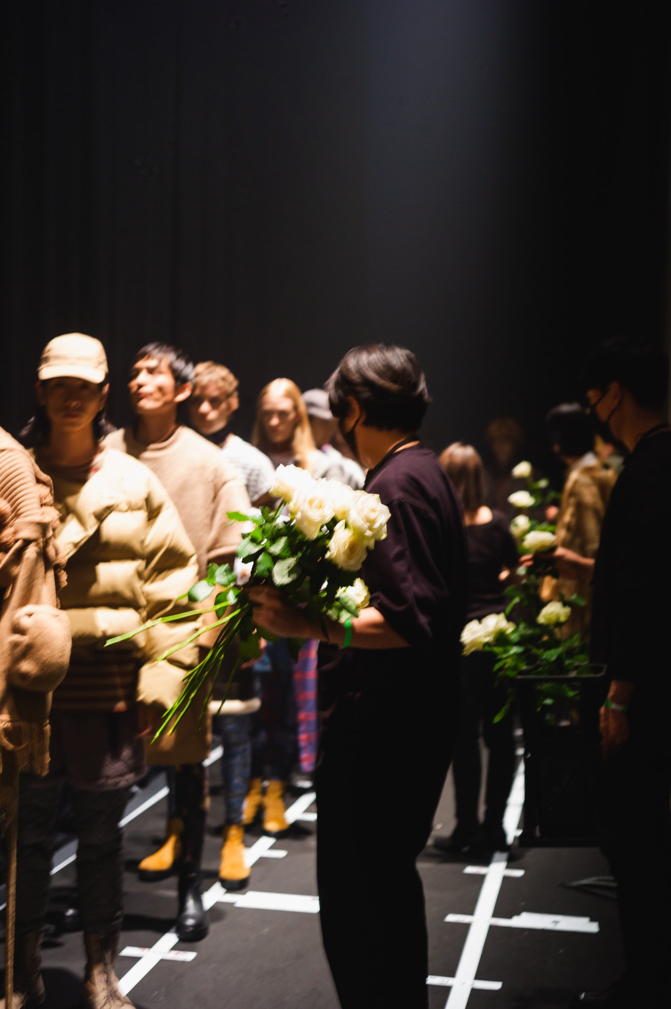 「本当にありがとうございました。みなさんの細かい仕事の積み重ねで、このショーを行うことができました。1月にオオスミタケシは亡くなりましたけれども、とにかくファッションが好きな人だったので、最後はこのランウェイショーでお別れの会をさせていただくことができて、本人にとってこれ以上の名誉はないと思います。幸せ者だなと思っています」