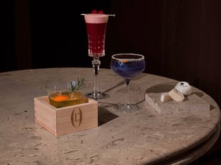 同じモクテルでもデザイン性の高いカクテルグラスに注ぐだけでおしゃれに演出。