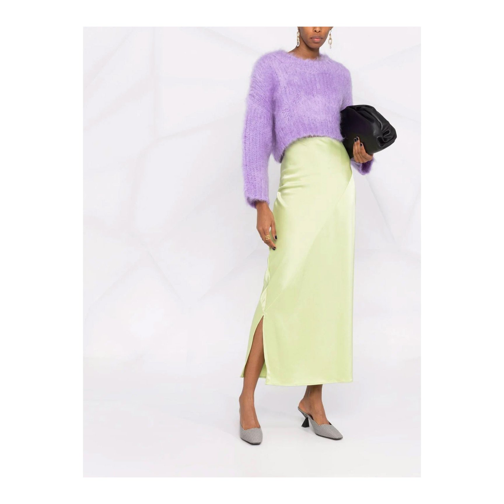 全面がクロップド丈、かわいらしくもカジュアルにも着こなせる「ヌメロヴェントゥーノ(Nº21)」のモヘアプルオーバー。モヘア80%でモヘアがしっかりと感じられる、つい触りたくなってしまう素材感が特徴。人と被りにくい薄いパーブルカラーが、女性らしさを引き立てる1着です。
