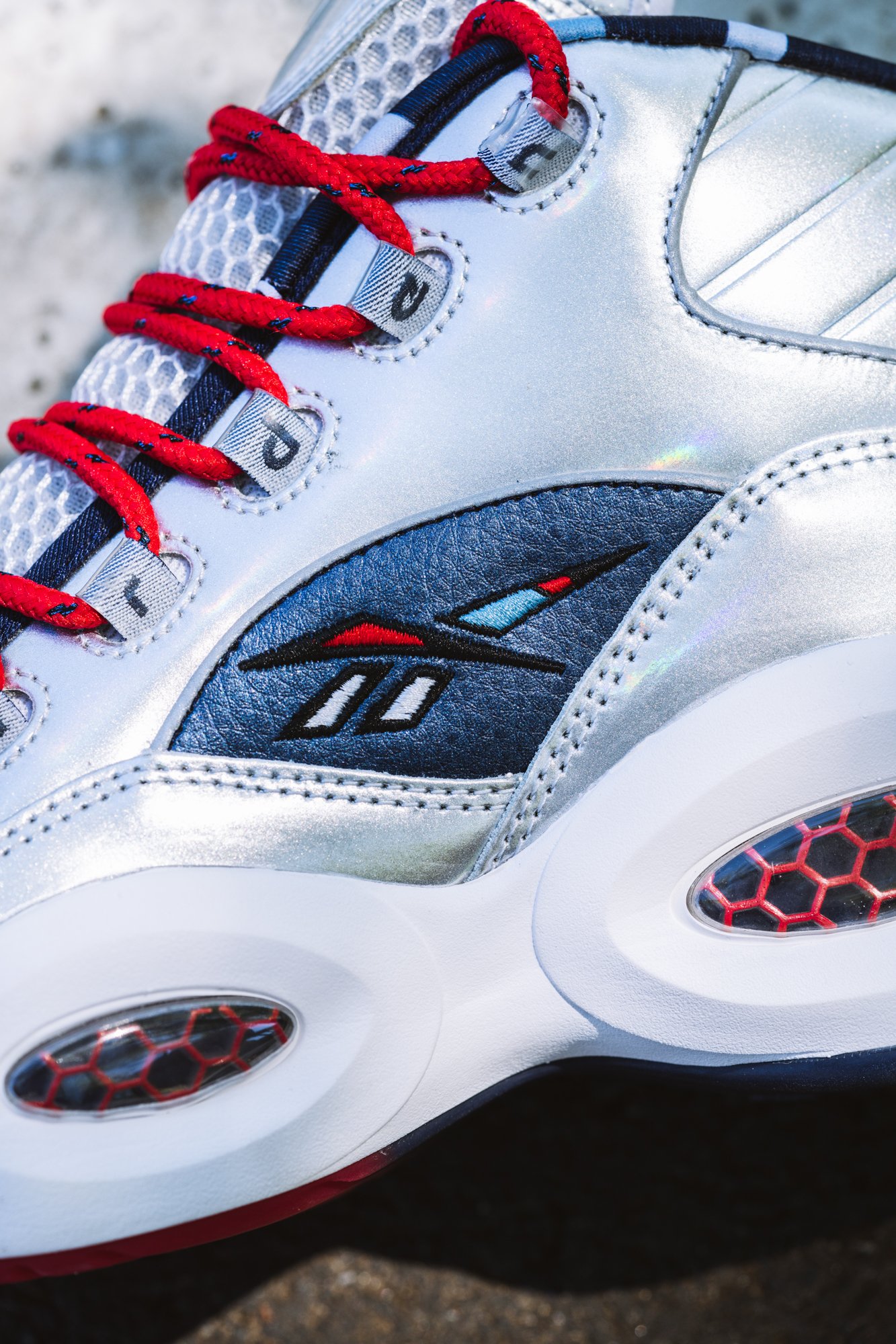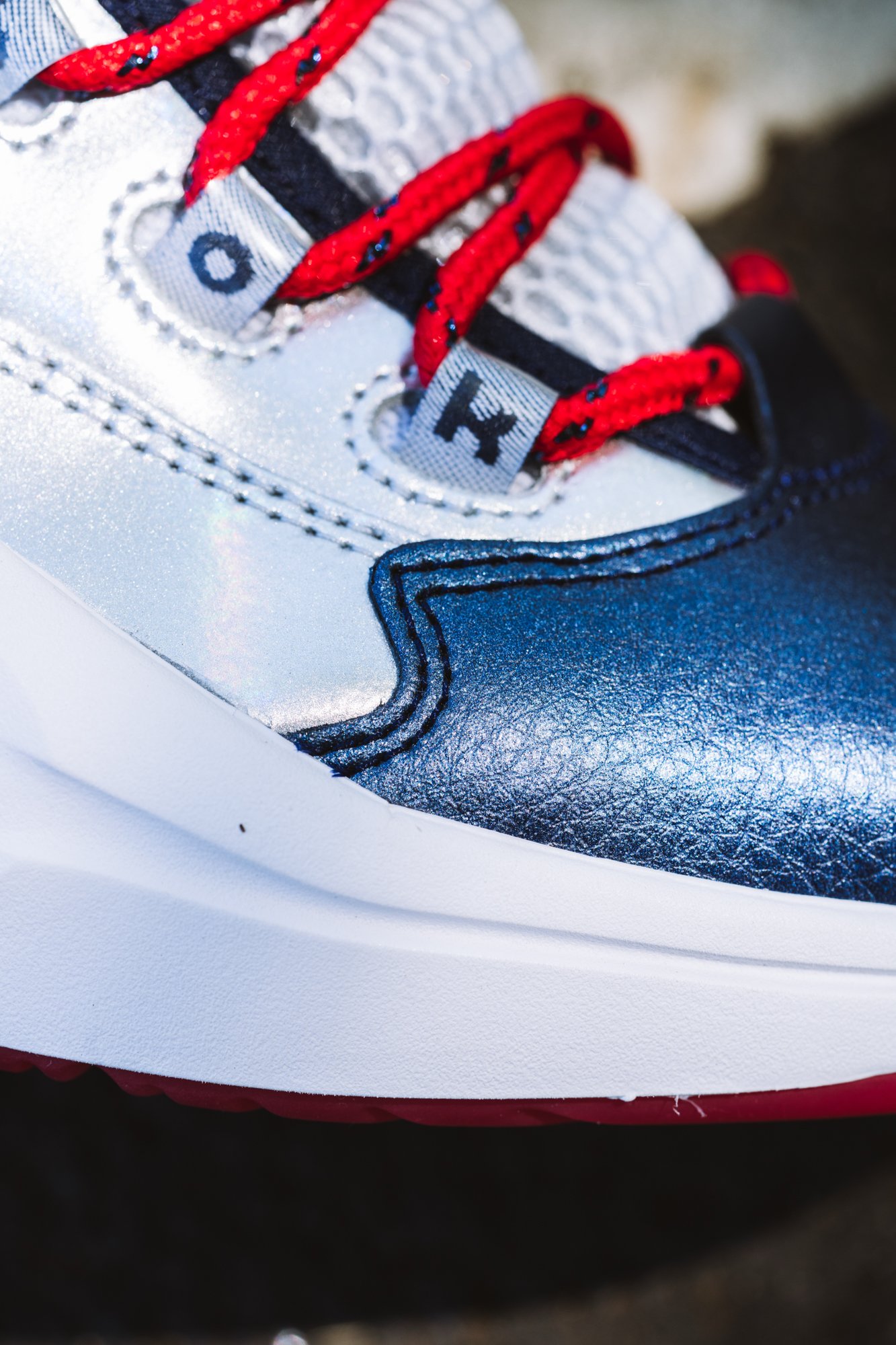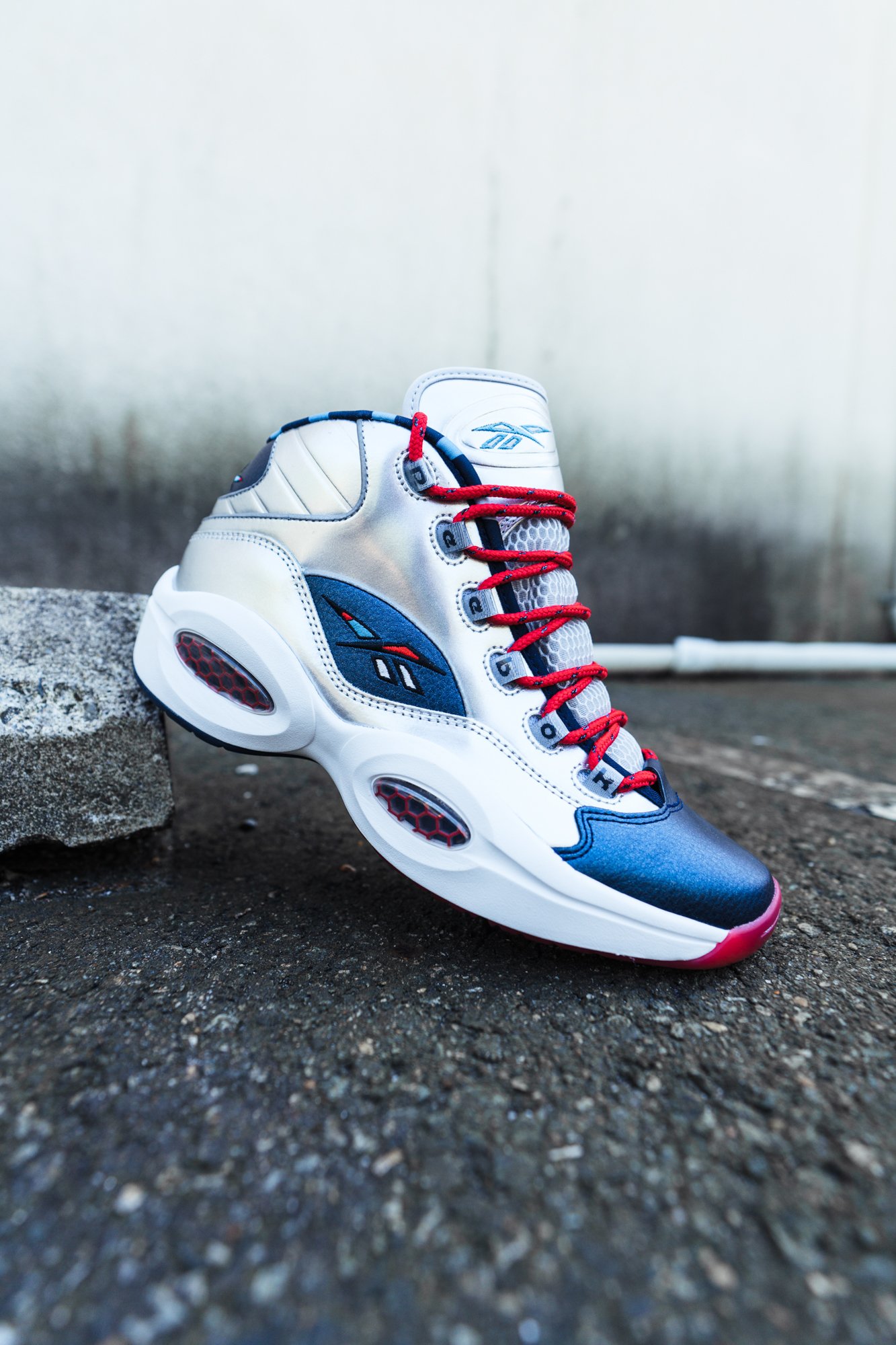 「リーボック(Reebok)と「アディダス(adidas)」のパートナーシップによって実現した元NBAプレーヤーのアレン・アイバーソン(Allen Iverson)と、ヒューストン・ロケッツに所属するジェームズ・ハーデン(James Harden)のコラボから第2弾モデルが発表されました。2選手それぞれが得意とするドリブル技名を組み合わせた「CROSSED UP, STEP BACK(クロスアップ、ステップバック)」をテーマに、アイバーソンのシグネチャーモデル「クエスチョン(QUESTION)」を光沢のあるシルバーとネイビーでデザイン。シューレースとソックライナーにアクセントとしてレッドを配し、ヒールにはコラボのロゴをあしらっています。価格は税込1万9800円。リーボックストア 渋谷やリーボック クラシックストア、リーボックオンラインストアなどで販売します。