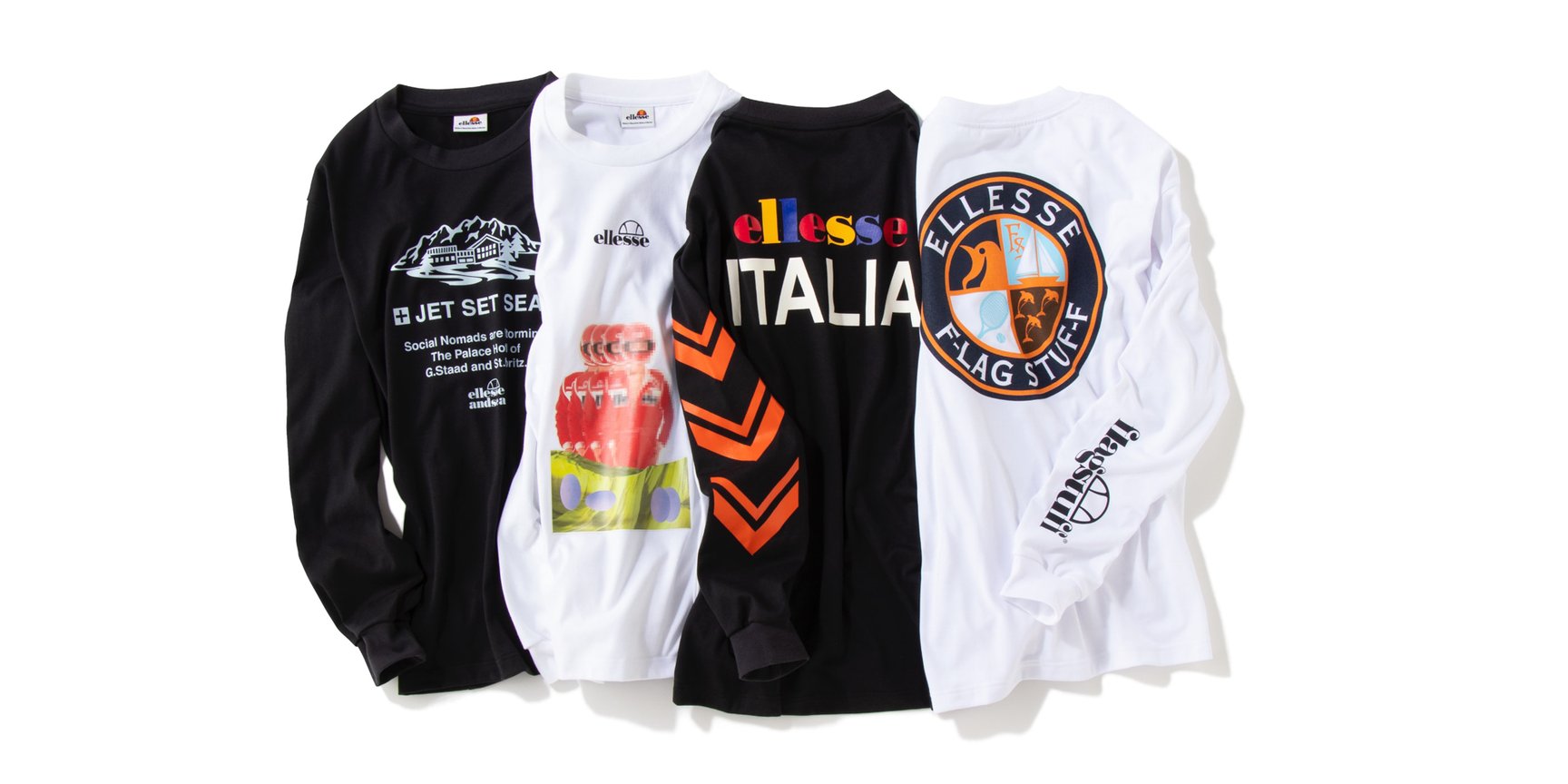 「エレッセ(ellesse)が、創業から60年の歴史の中で生まれたグラフィックを題材にしたミニコレクション「エレッセ アーカイブ LSティー(ellesse Archive LS TEE)」を発表。「フラグスタフ(F-LAGSTUF-F)」「オンブレ・ニーニョ(Hombre Niño)」「ウィンダンシー(WIND AND SEA)」の3ブランドと、アーティストのとんだ林蘭の4組とそれぞれコラボし、エレッセのアーカイヴグラフィックを落とし込んだロングスリーブTシャツ4型を製作しました。価格は各8800円(税込)で、エレッセの直営店「エレッセ トーキョー(ellesse TOKYO)」とオンラインストア限定で販売します。