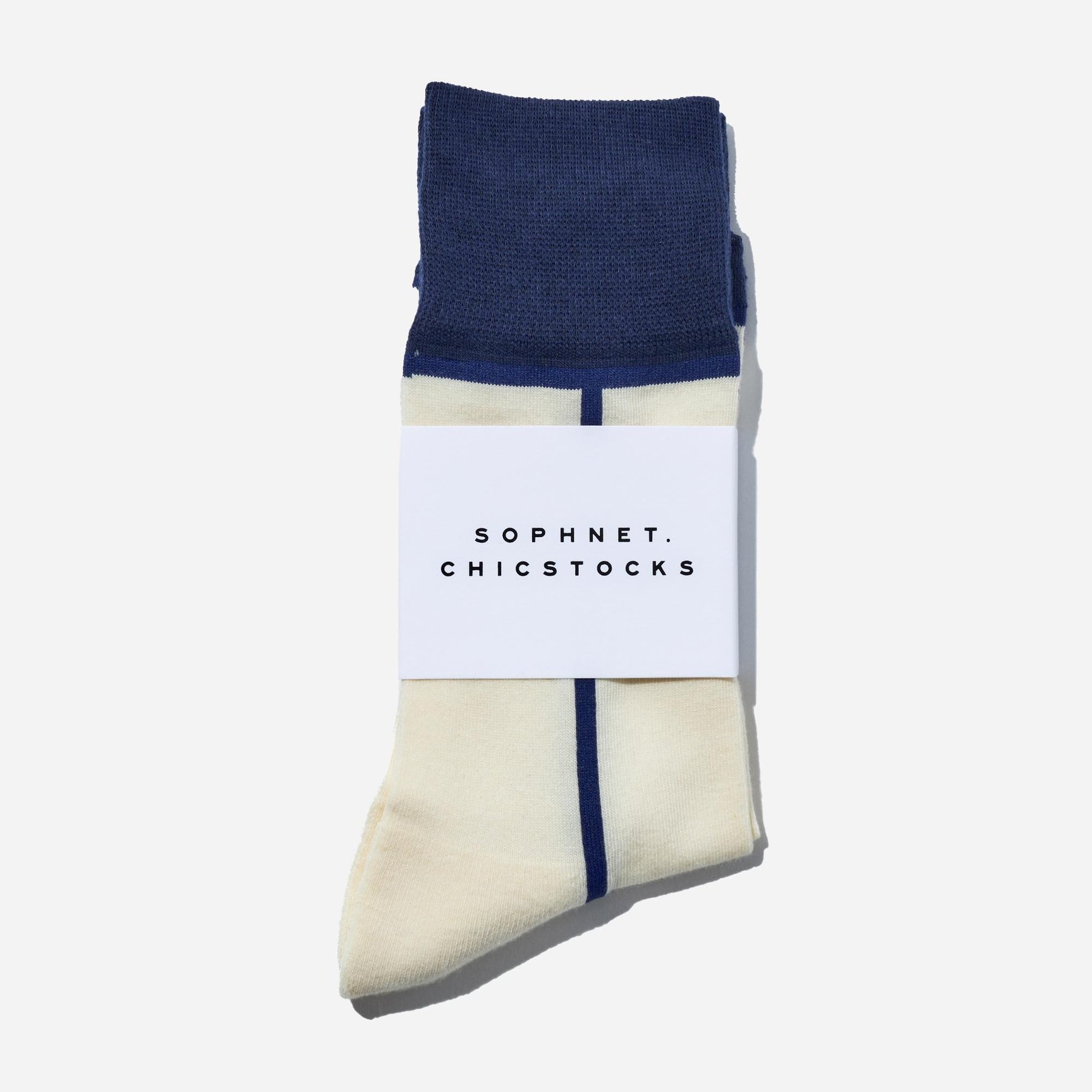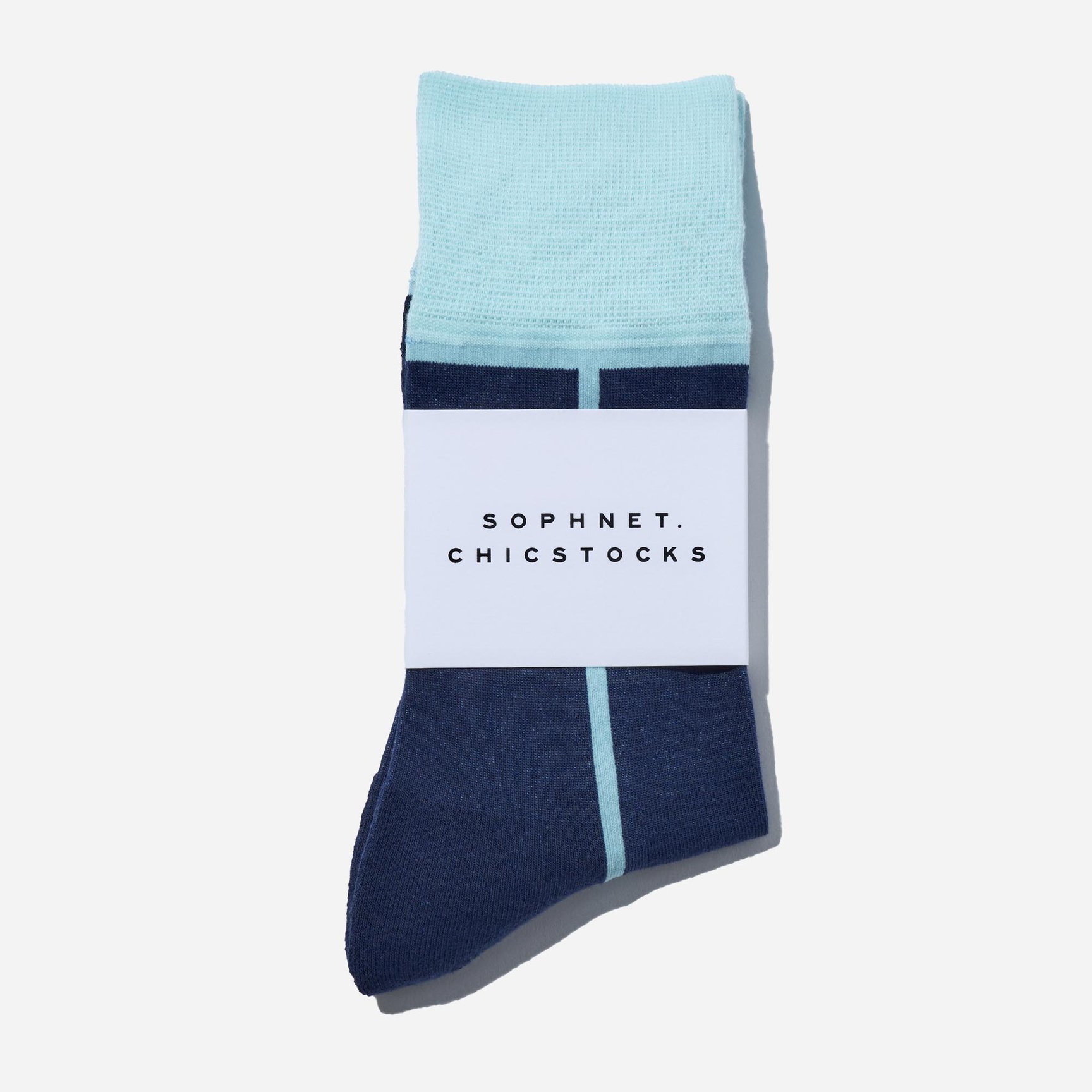 ソックスブランド「シックストック(CHICSTOCKS)」が、「ソフネット(SOPHNET.)」とのコラボソックスを発売します。シックストックのラインソックスをベースに、ソフネットの象徴するカラーリングでアレンジ。素材は抗菌防臭加工を施したドラロンコットンを使用し、負荷のかかる足裏にはパイル編みで仕上げ、履き口は長めにアレンジすることで程よく緩めのテンションで編み上げています。
