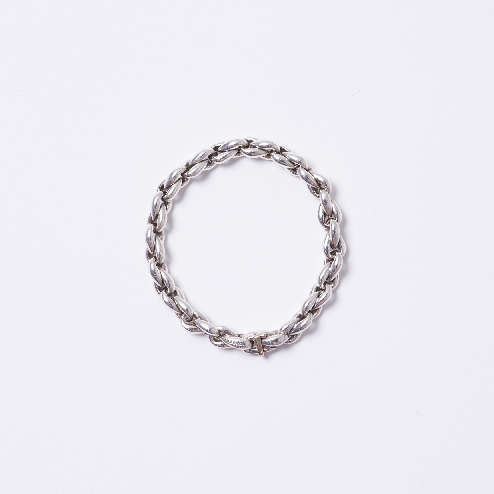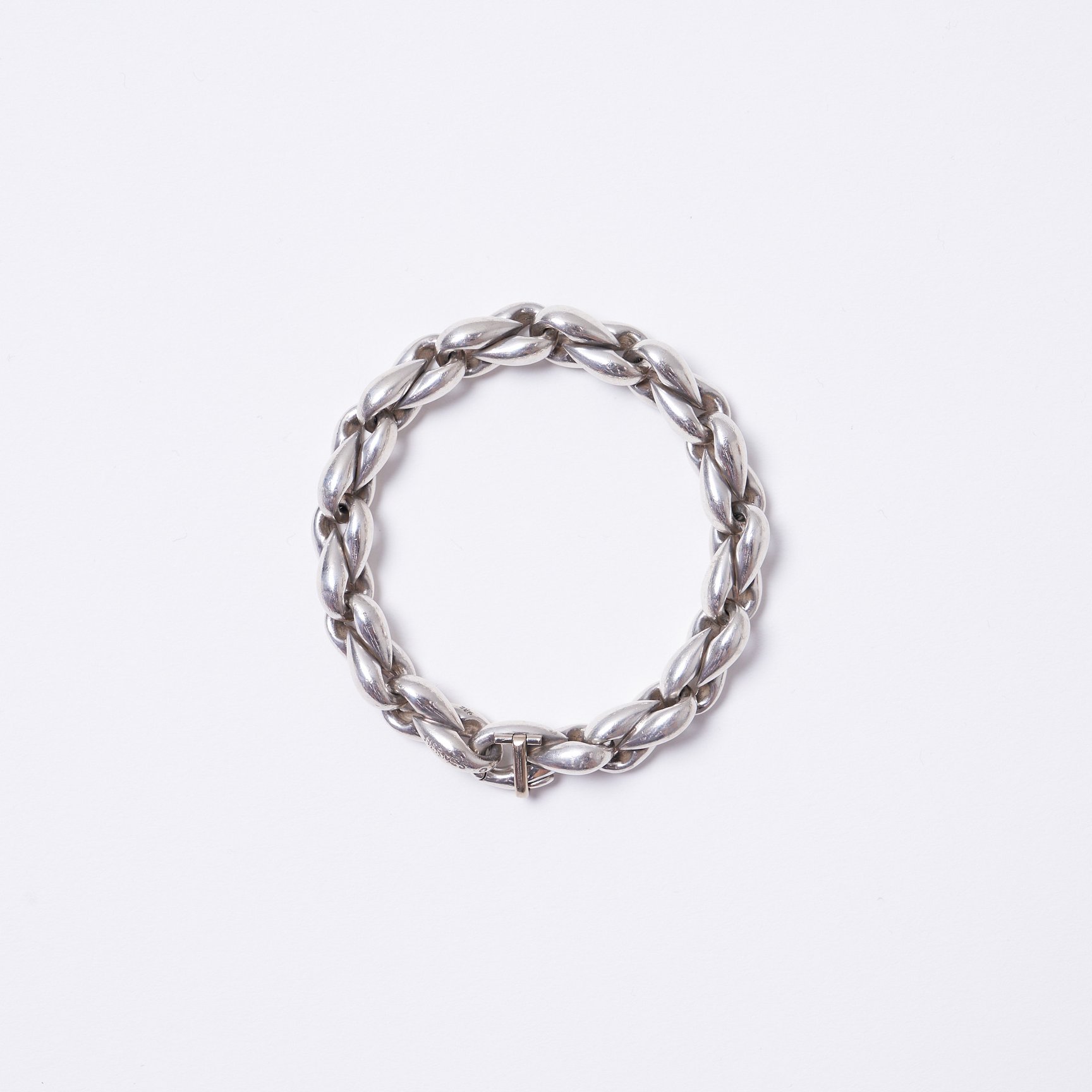 実はこのグレンデシャンは、出会ったときにヴィンテージエルメスを自分の仕事にしてその魅力を伝えようと決めたくらい、僕にとって思い入れの深いモデルです。価格ばかりがひとり歩きしてしまいがちですが、グレンデシャンの素晴らしさはやはりそのデザインの完成度の高さにあると思います。シンプルで付けやすいのに、存在感がある。誰が見ても素敵だと思えるデザインではないでしょうか。エルメスのブレスレットには太いものが多いんですが、グレンデシャンは細身なので時計と重ね付けしてもOK。その素晴らしさ故に、数多くのブランドがサンプリングしています。誰もが気軽に買えるものではありませんが、知識として知っておいて損はないと思います。