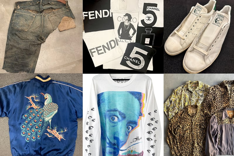 十倍直昭:1990年代に展開されていた、「フェンディ(FENDI)」や「シャネル(CHANEL)」、「カルバン クライン(Calvin Klein)」などのブランドTシャツ。大胆なデザインと落ち着いたモノトーンの色合いのコンビネーションがこの時代ならでは。