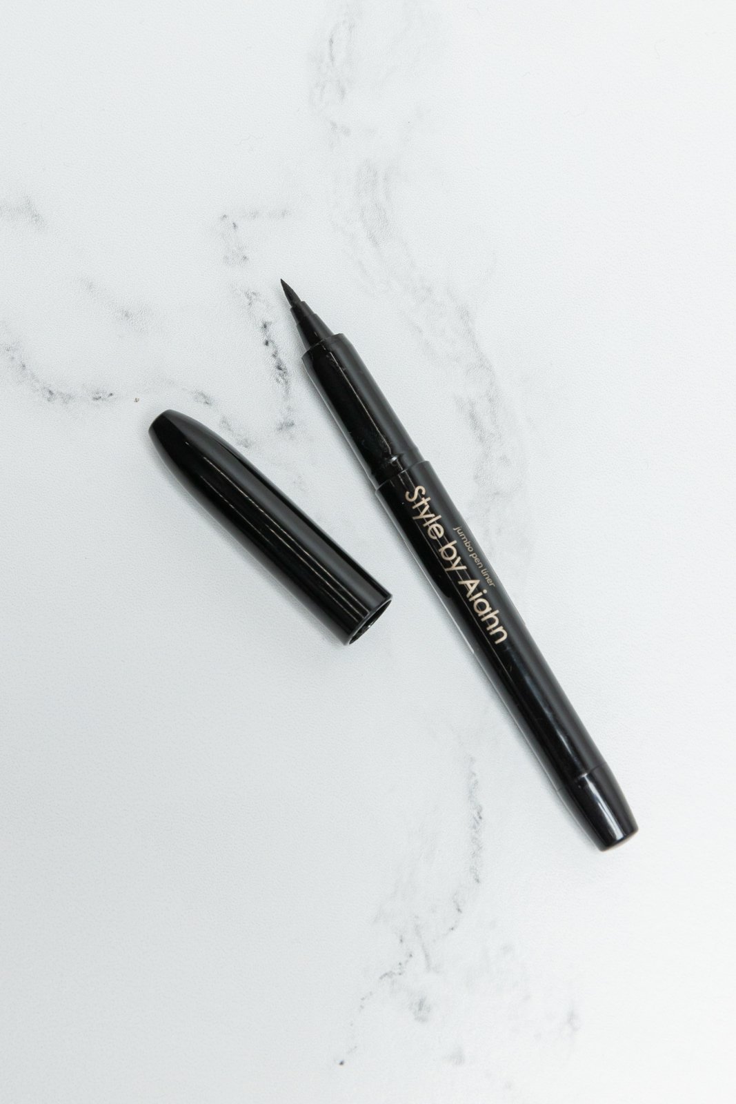 フェルトタイプのアイライナーで、芯のコシがしっかりしてるのでまつ毛の隙間を埋めるのに最適。現場ではブラウン2本を使うんですが、1本は通常のしっかり色が出るもので、もう1本はなくなりかけで色が薄くなってきたものなんです。薄さがちょうど良いのと、フェルトなのでポロポロしたりせず、絶妙な濃さのラインを引けるので、裏技って感じで使っています。