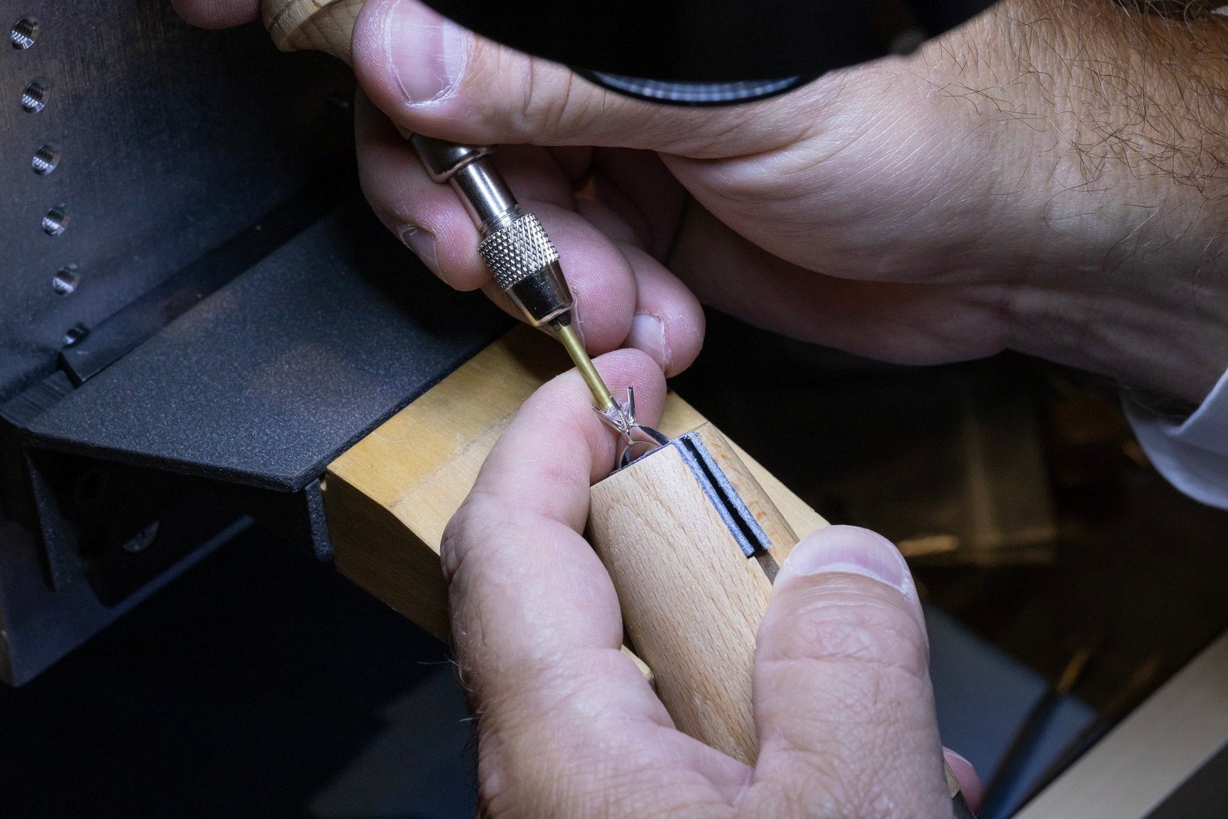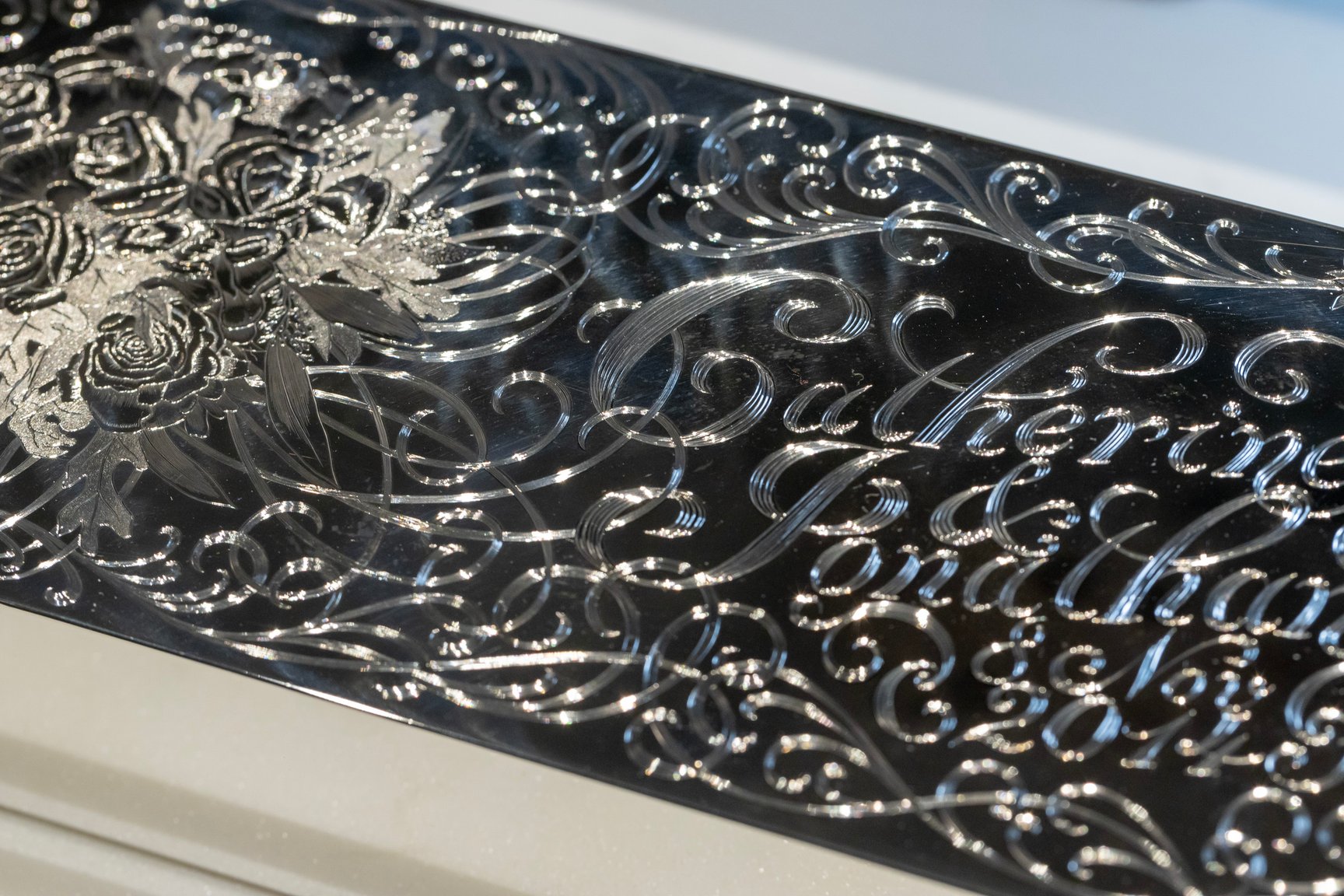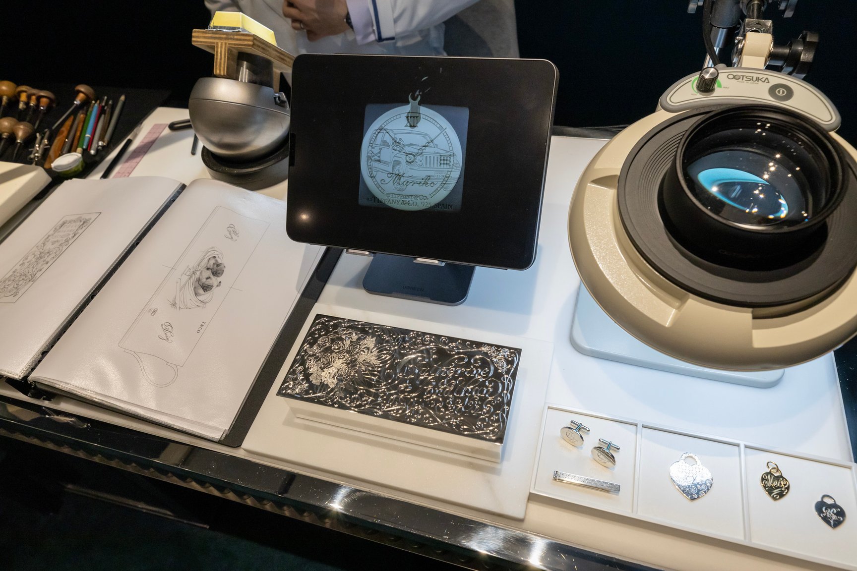 また、店内には経験豊かなリードハンドエングレーバーも常駐。名前や日付、特別なメッセージなど、様々なリクエストをデザインに起こし、リングの裏などに手彫りで刻印してくれる。普段は見ることのできない緻密な作業風景や作品サンプルから、デザインへのインスピレーションがもらえそう。
