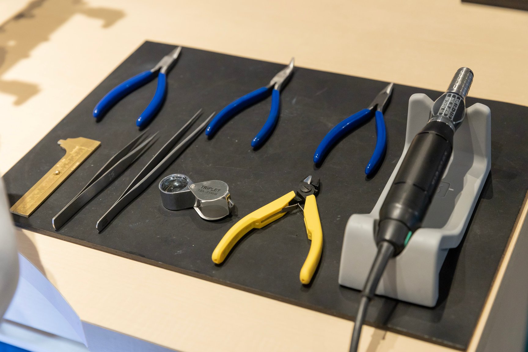 期待に胸を膨らませながら先に進むと、宝石をシャンクにセッティングするためのワークプレイスが現れる。ここでは、ティファニー ニューヨーク本店より来日したダイヤモンドセッターの卓越したクラフトマンシップを垣間見ることができる。