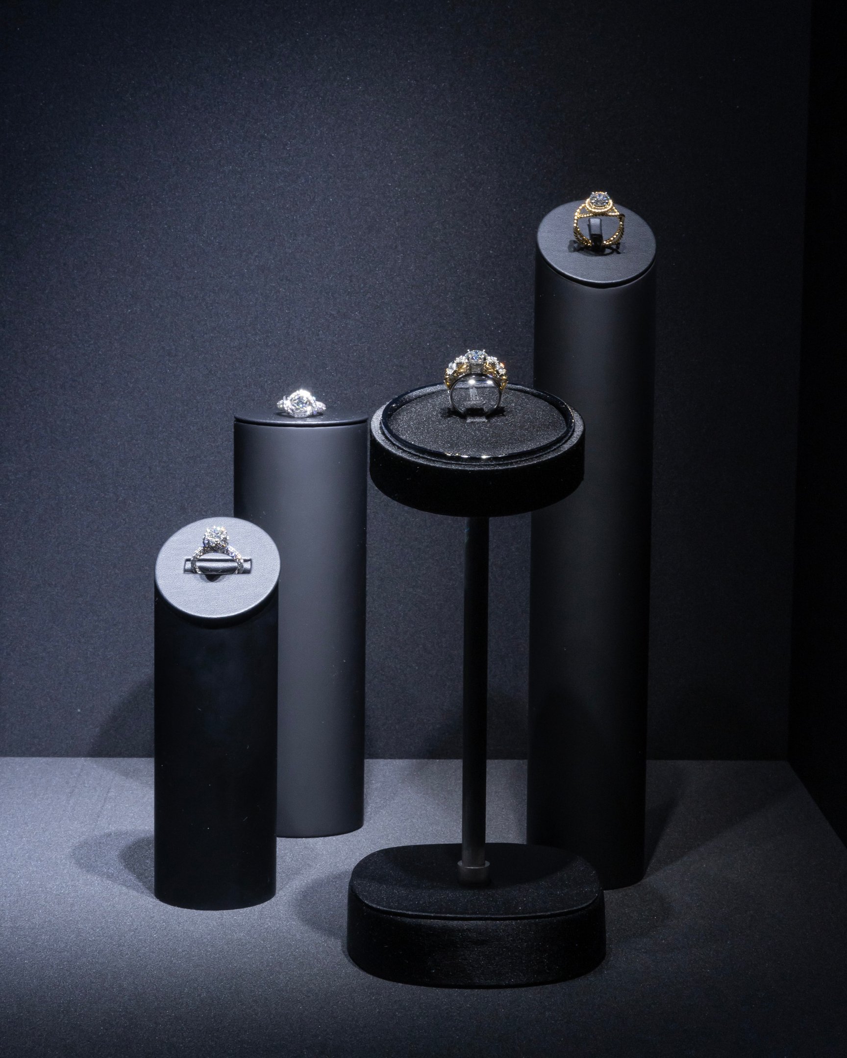 そのほか、チャールズ ティファニー セッティングのメンズ エンゲージメントリングなど、多様なアイテムが並ぶ。アートギャラリーのような空間で、時間が経つのも忘れてしまいそう。