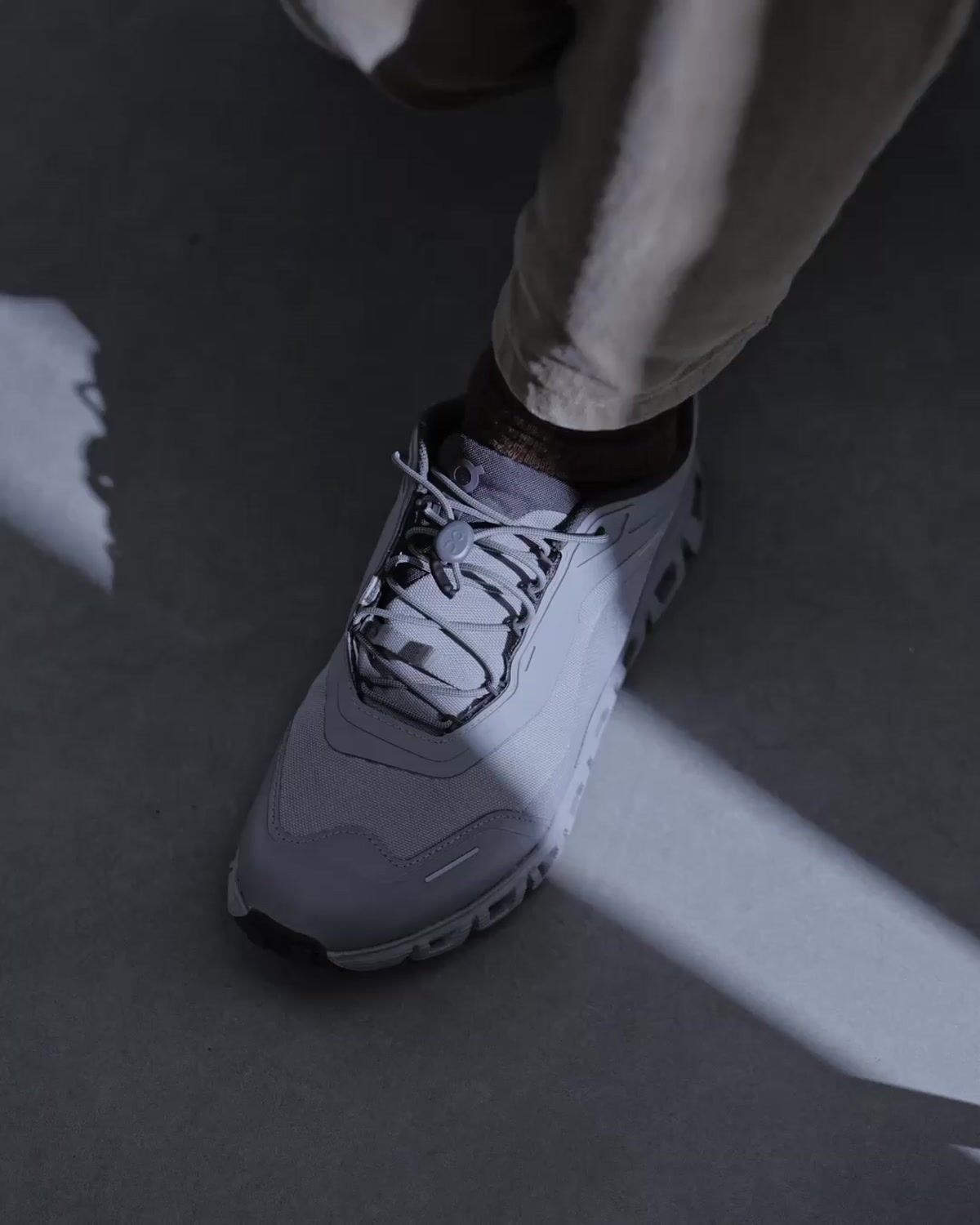まず目を惹くのが、いつくのも層が重なったように構築されたアッパーのデザイン。地形図から着想を得たというユニークかつブランドらしいデザインモチーフから生み出されたアッパーは、トレンド感のあるテクニカルな佇まいが目を惹きます。緩やかな曲線とシャープな直線によって構築され、従来の「オン」のシューズのミニマルな佇まいとは異なる高いデザイン性を堪能できるうえ、ストリートや日常のスタイリングにも自然に溶け込みます。