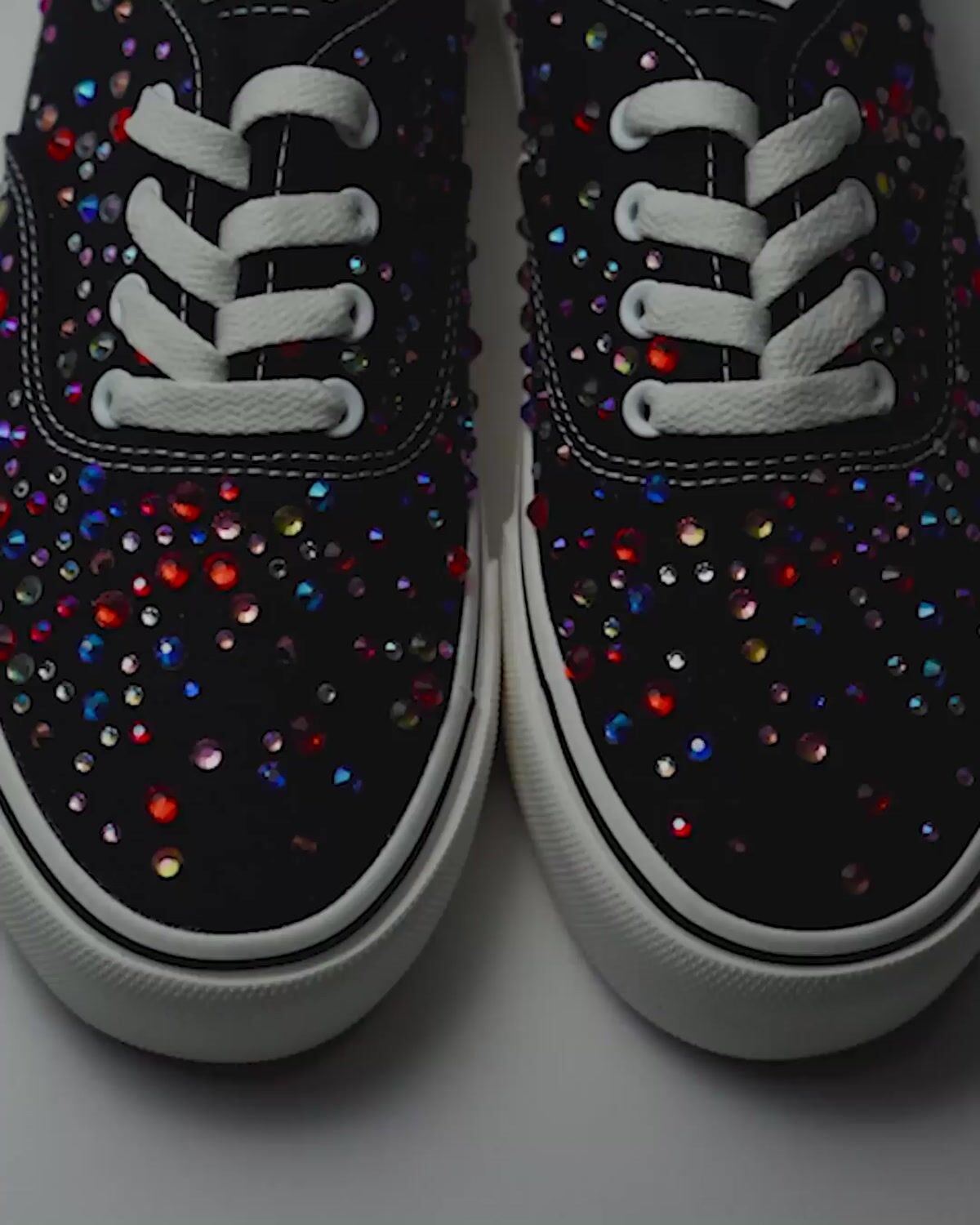 一見するとハードルが高いようにも感じますが、スケシュー由来のローテクなムードと平たいシルエットも相まって意外とすんなり馴染みます。ルーズなボトムスを合わせればつま先だけ、9分丈のボトムスを選べばヒール部分も全て見せることができるなど、裾との関係性に注意すればストーンの存在感も上手く調整できるので、好みやシーンによって合わせられるはずです。カジュアルなスタイルはもちろん、華やかなシーンであればドレッシーなセットアップのハズしとして使うなど想像次第で取り入れられ、スタイリングの幅を広げてくれること間違いなし。着こなしが淡白になりがちなこれからの季節の主役を担う一足をチェックしてみて。