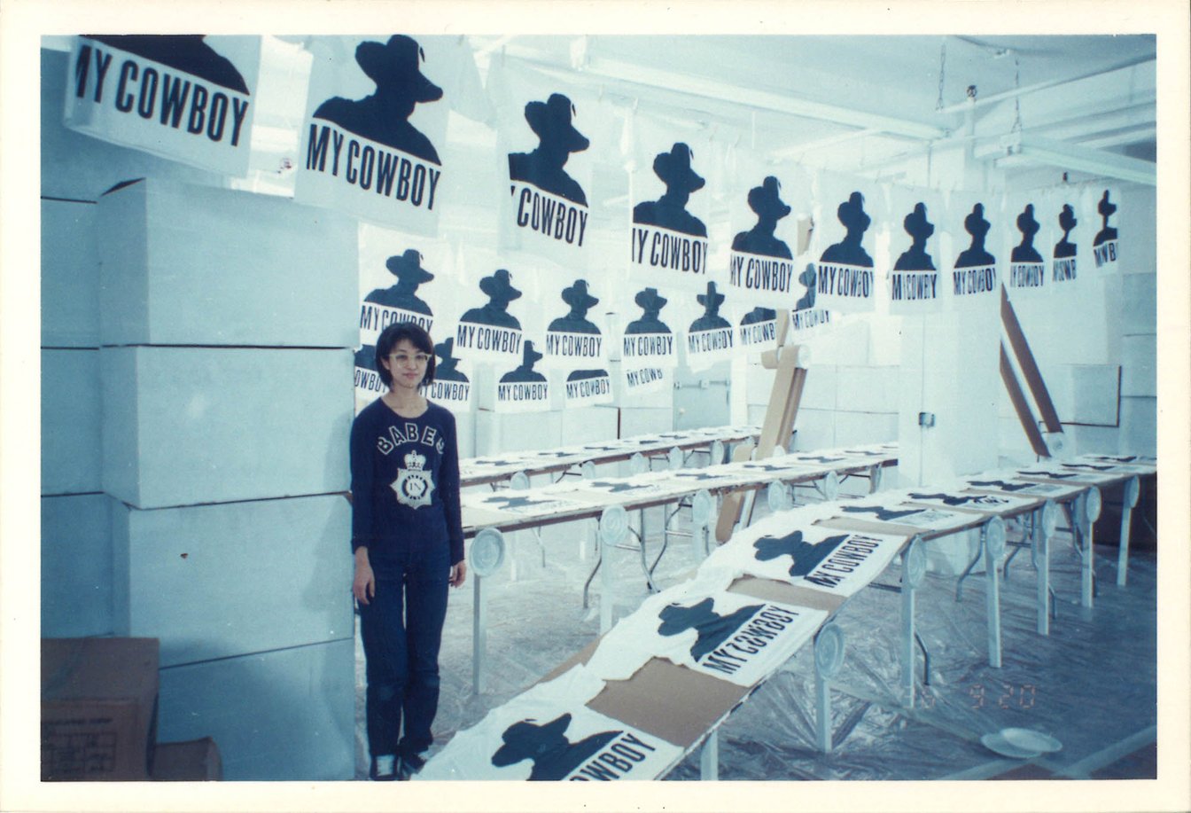 1997年「花椿」2月号NYロケにて。マイクミルズのTシャツ工場での様子。
