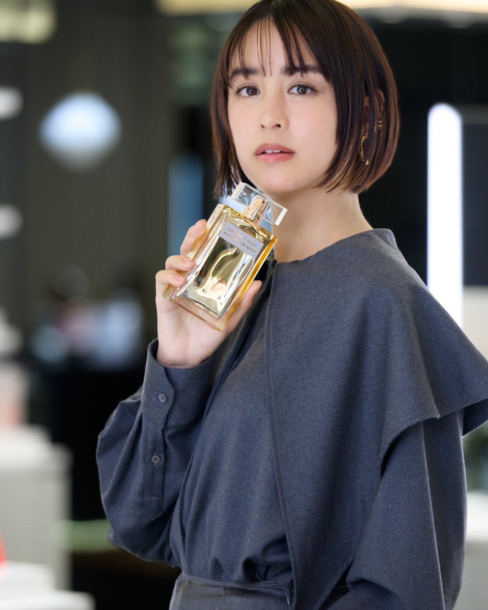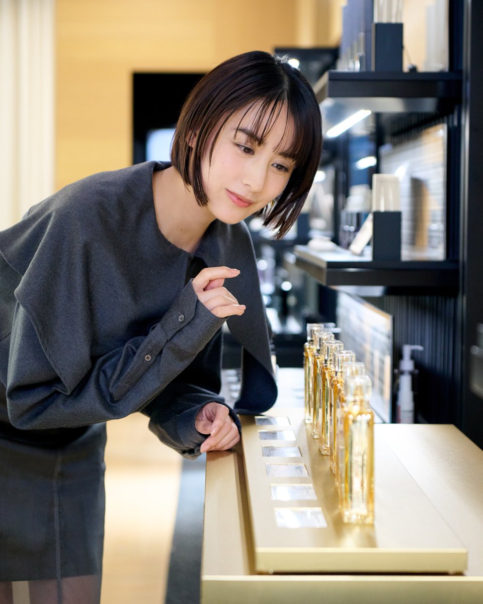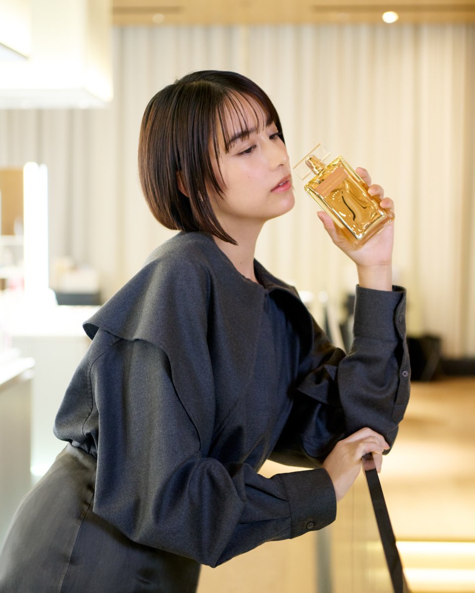 「このコレクションのすべての香りの中心にムスクがあって、女性が持つしなやかさと色気の一言では表せないような複雑な魅力が詰め込まれていると思いました。色気ってその人が経験してきたことや、知性、品性、愛情などが積み重なって、内側からにじみ出るようなものだと思うんです。だけど、“こんな色気のある女性になりたい”と思った時、香りが自分自身の気持ちと、まとう空気感を演出してくれる。フレグランスってそういう力があるものだと思います」。⎯⎯山本美月
