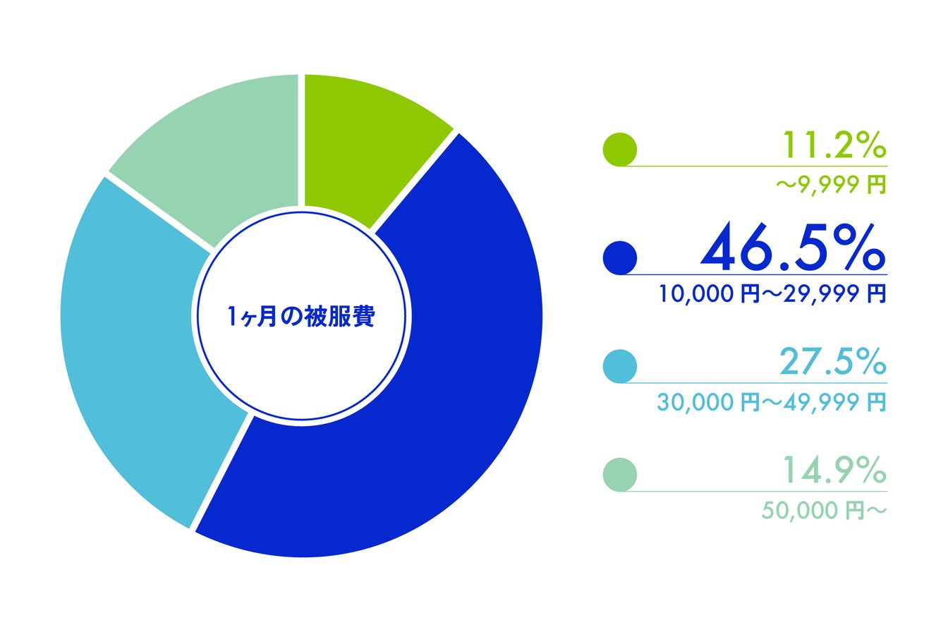約半数が1ヶ月の被服費を1万〜3万円と回答。5万円以上かけているという人も約15%と高く、ファッションへの熱意を感じます。
